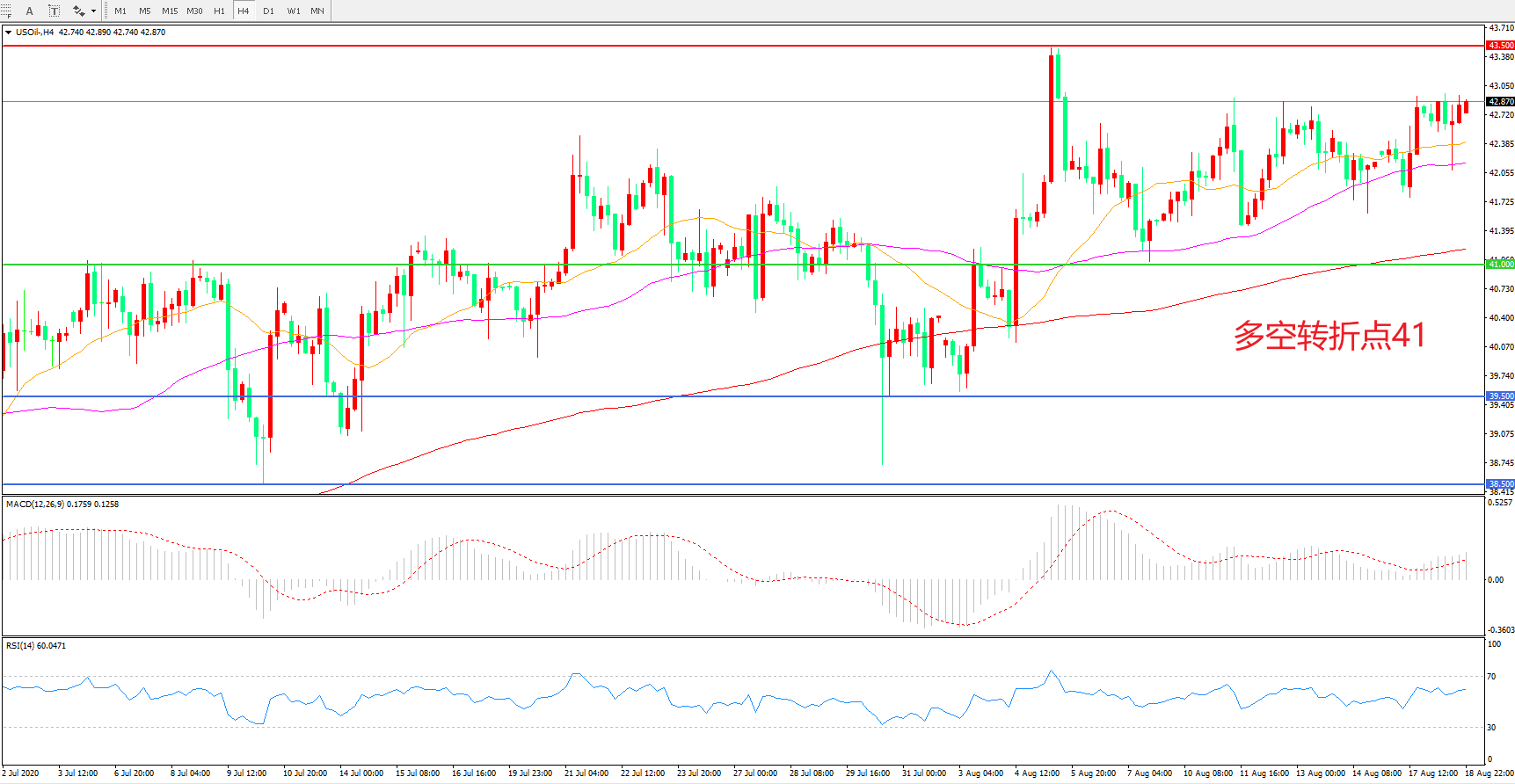 交易策略:在41.00之上看涨,目标43.50 46.00
