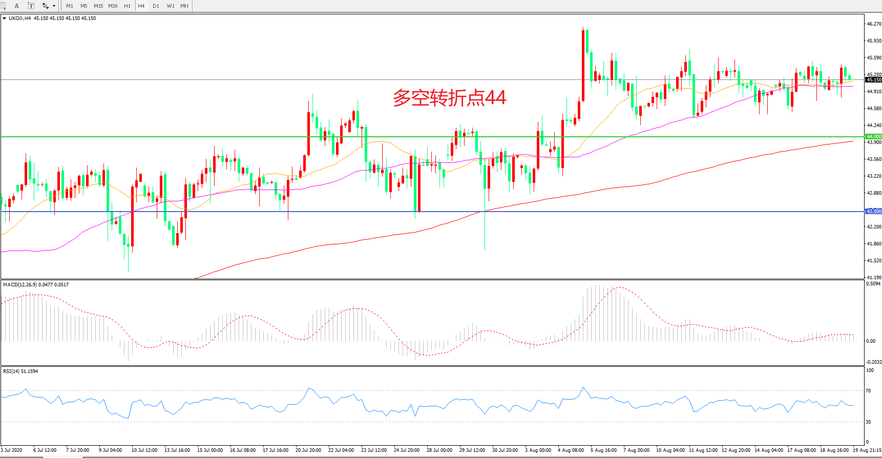 交易策略:  在44.00之上看涨,目标46.50      49.00