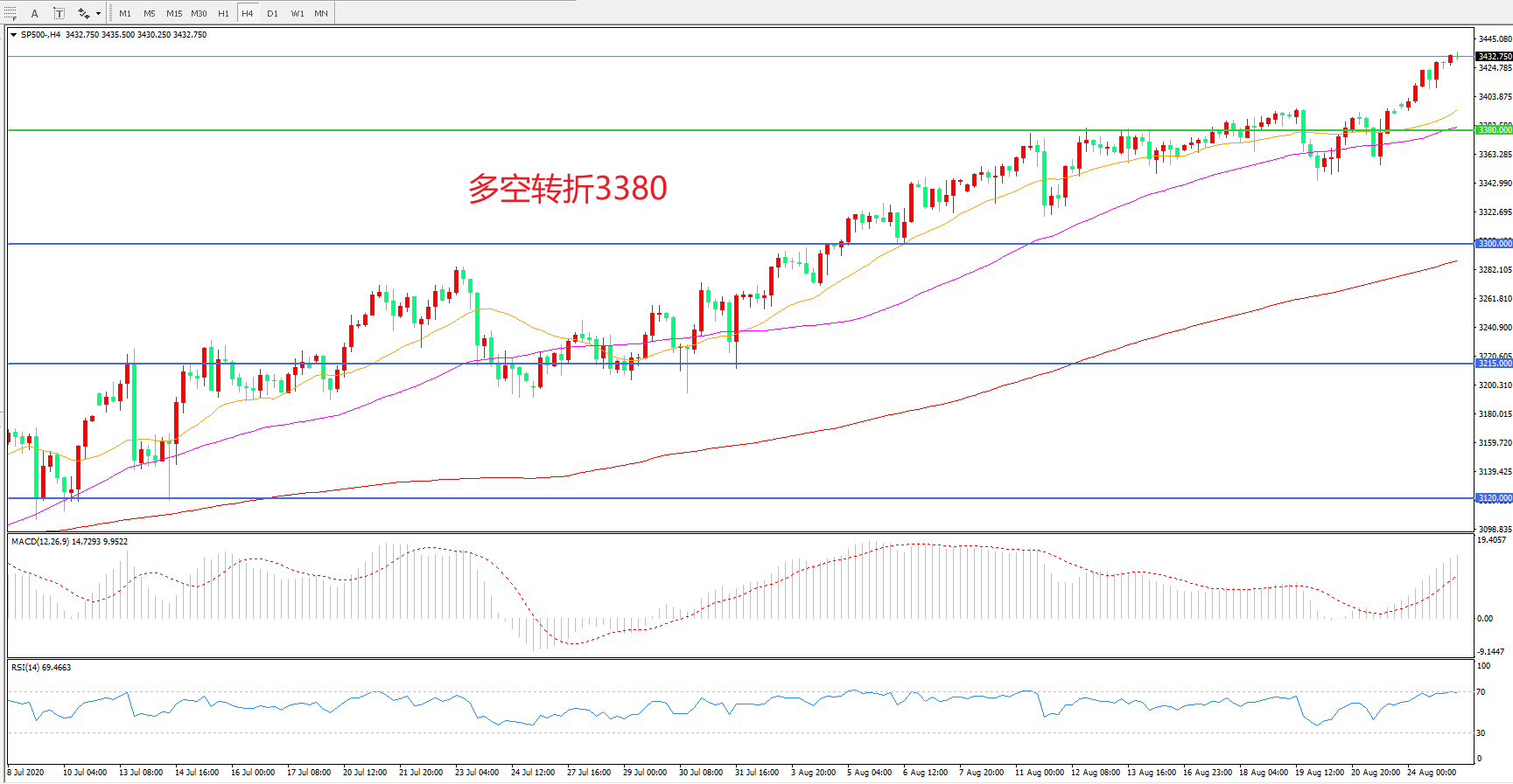 交易策略:在3380.00之上看涨,目标3450.00 3530.00
