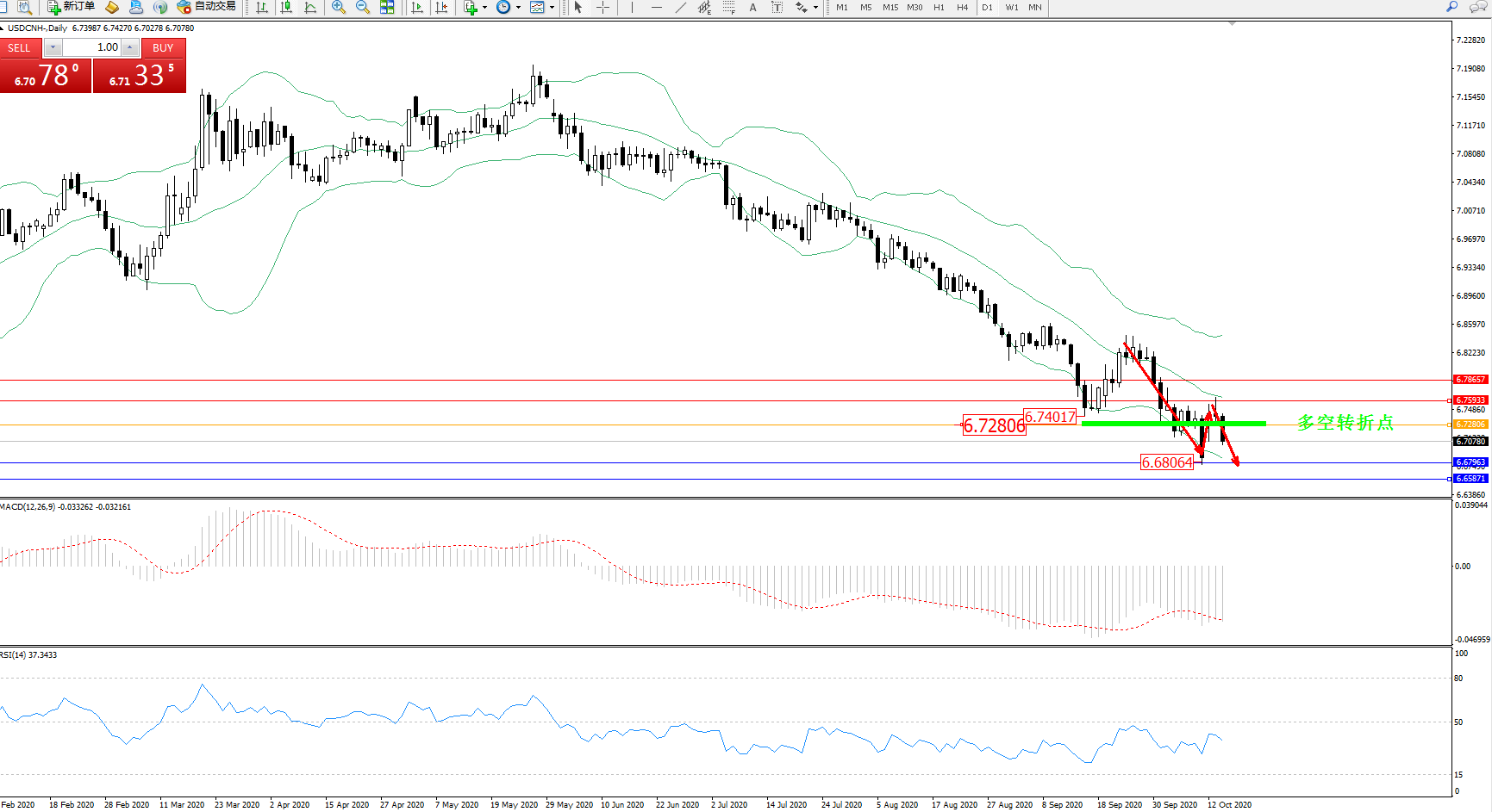 交易策略:6.72806下方看跌,目标6.67963、6.65871