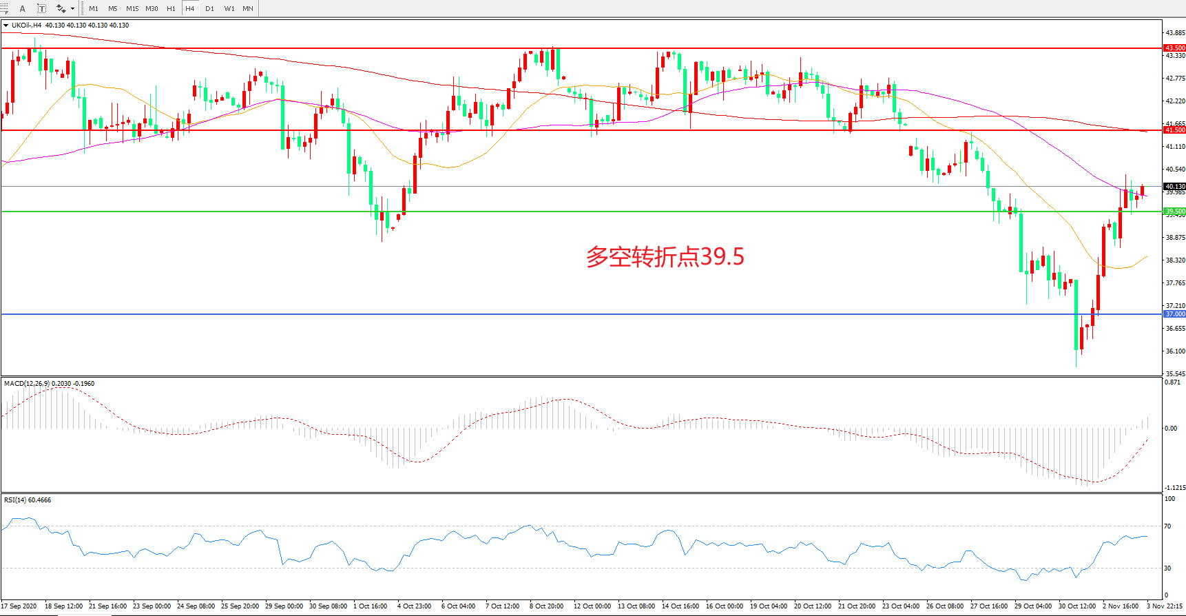 交易策略: 在39.50 之上看涨,目标41.50 43.50
