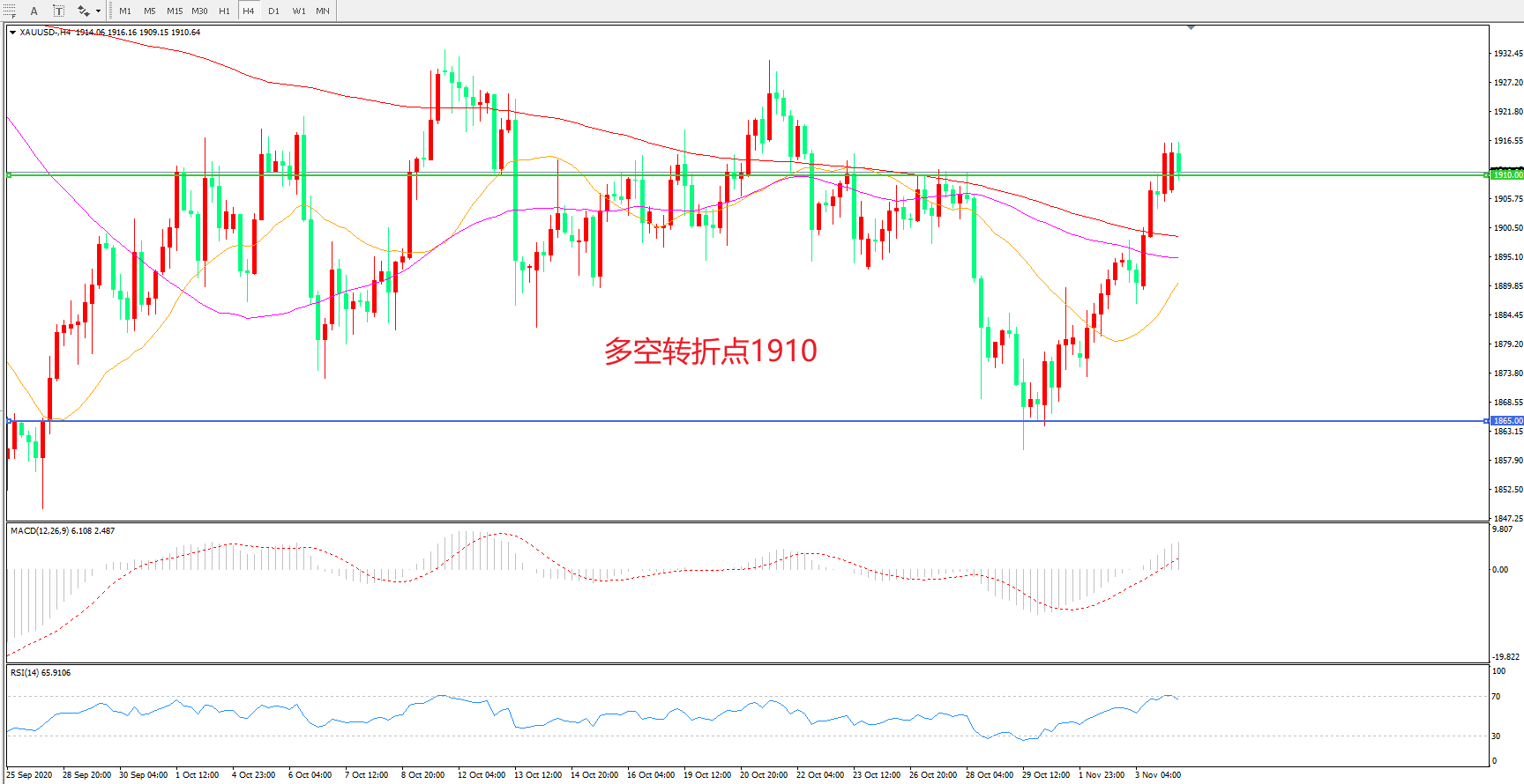 交易策略:在1910.00之上看涨,目标1950.00   1980.00
