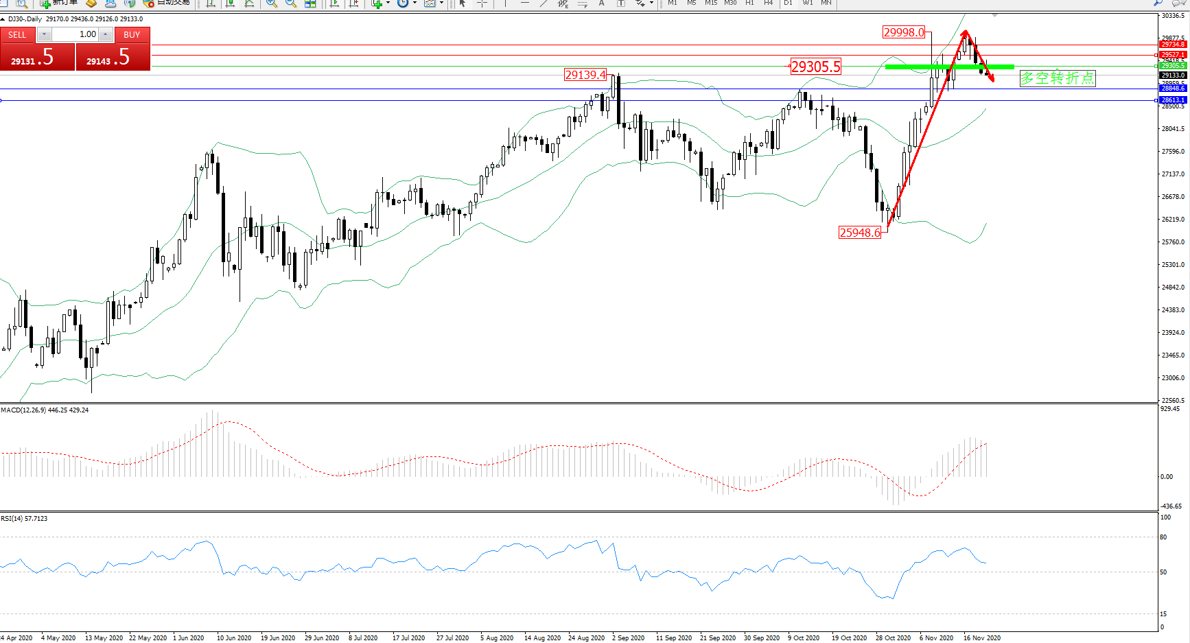 技术点评:多头动力持续震荡上扬后高位遇阻回撤下移,短期或将延续下行跌势,关注前期高位29139附近节点,布林带指标呈张口走势后开始有收口迹象,MACD指标处于多头区域持续震荡上扬后高位整理中,RSI指标处于多头区域持续震荡后有回撤向下移动;