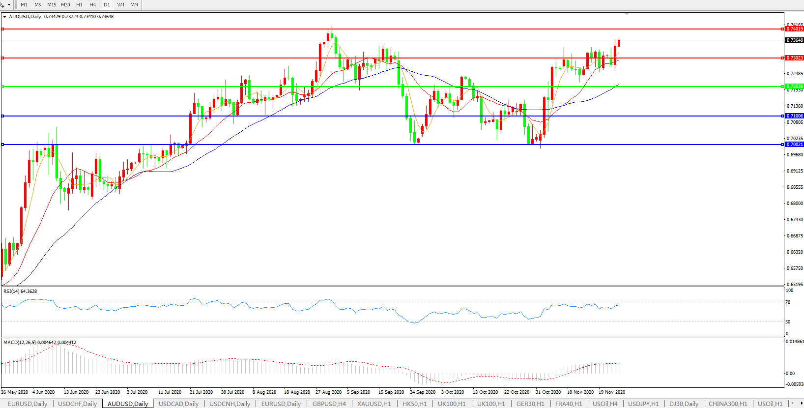 交易策略:0.7200上方看涨,目标0.7300、0.7400