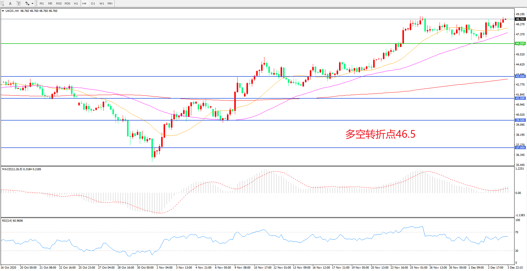交易策略: 在46.50之上看涨,目标50.00 53.00