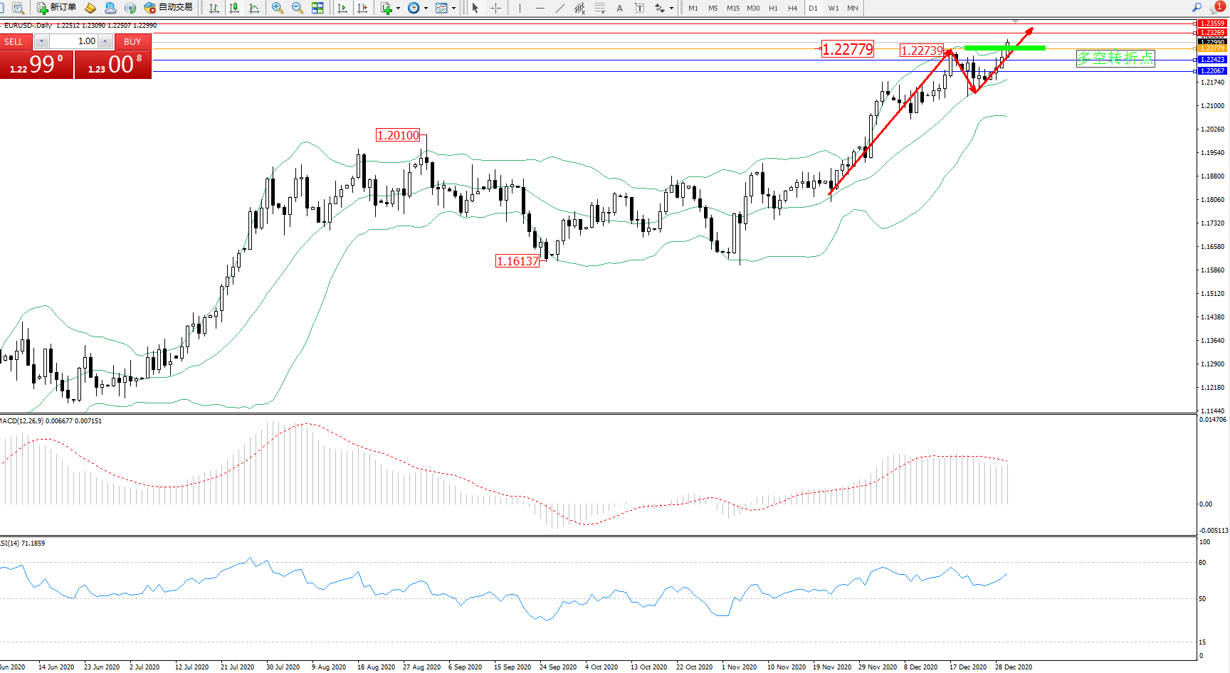 交易策略:1.22779上方看涨,目标1.23269、1.23559