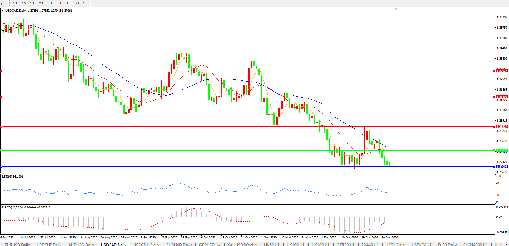 美元兑加元USDCAD 日线图: