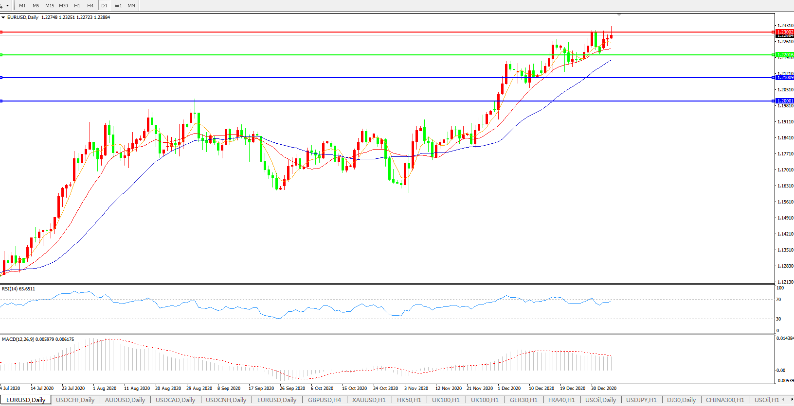 交易策略:1.2200上方看涨,目标1.2300、1.2400