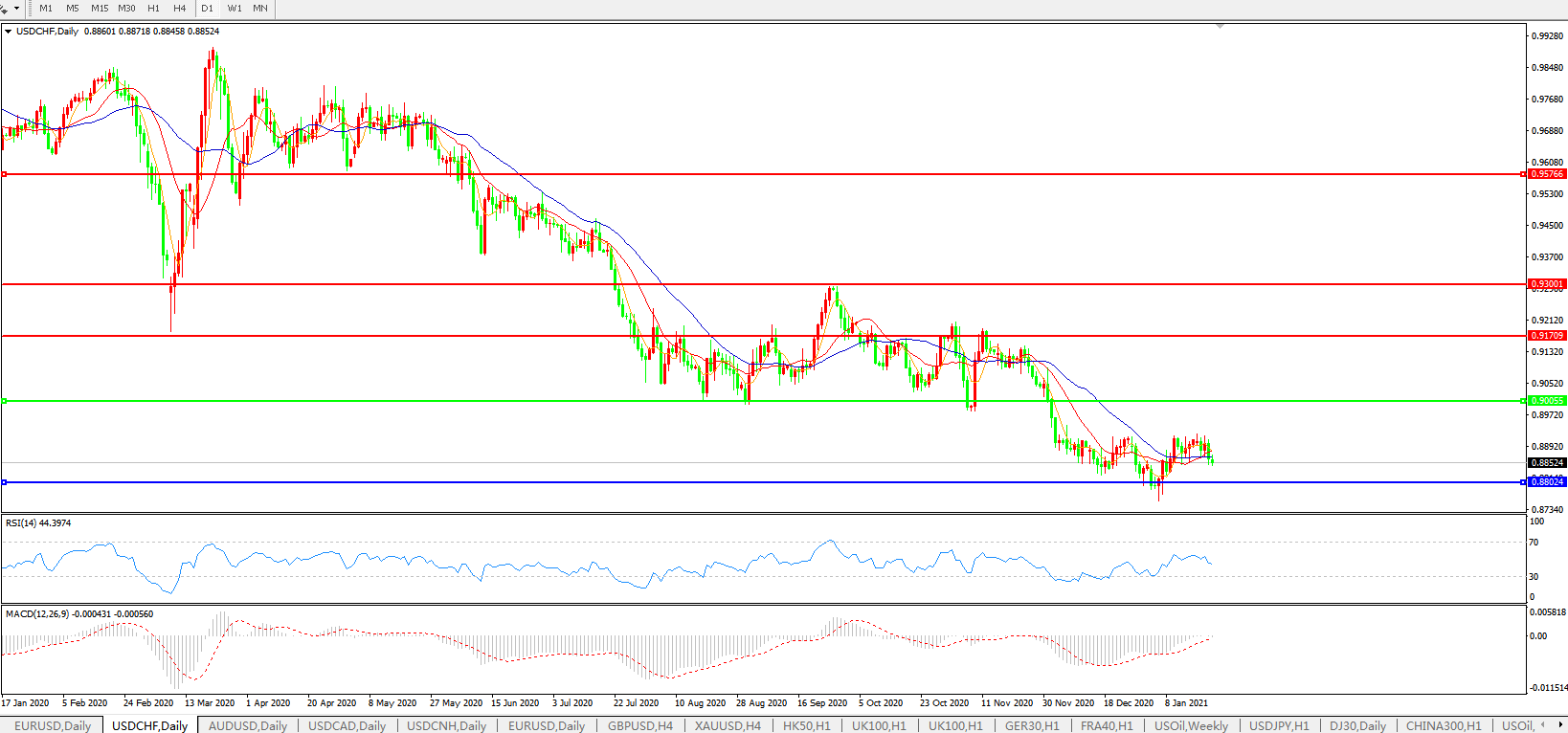 拜登主政刺激升温,美元兑瑞郎承压下行