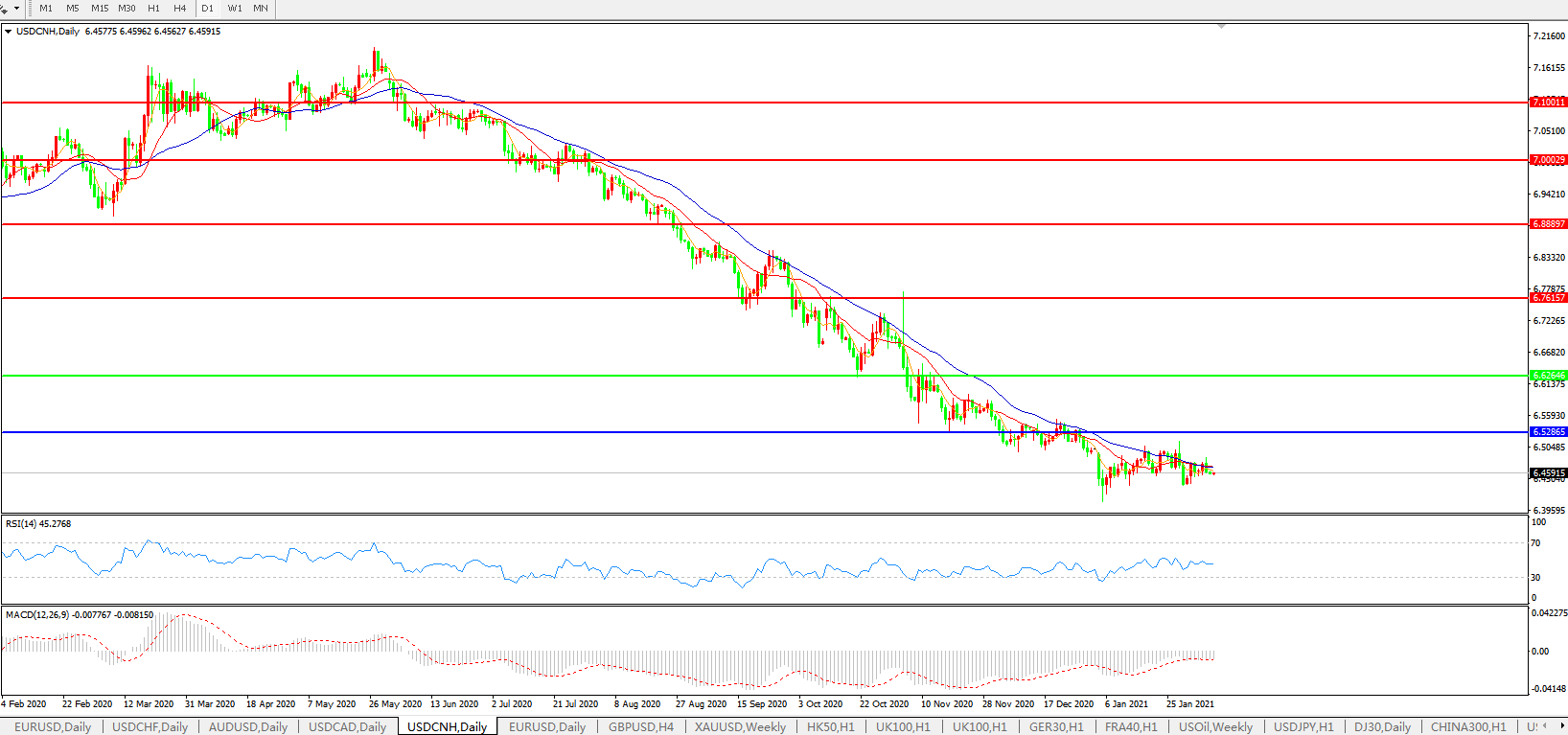 交易策略: 在6.6265之下,看跌,目标价位为6.5286,然后为6.3500。