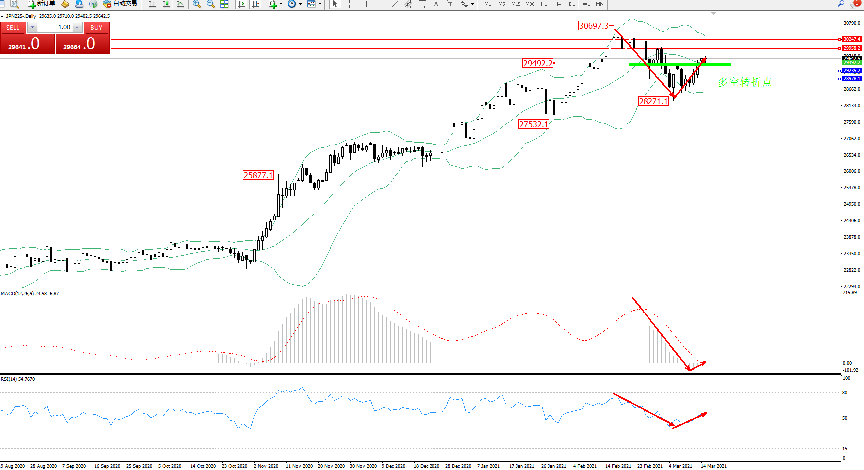 日经225指数3月15日(周一)收盘上涨41.67点,涨幅0.14%,报29759.50点。近期变异新冠病毒在日本快速蔓延。为防止变异新冠病毒进一步从海外流入,日本再次收紧入境政策,对入境人数作出了限制,使平均每天的入境人员数量不超过2000人。这一要求针对所有入境者,包括日本人以及持有日本中长期居住资格、重新入境的外国人。令人担心的是,日本相继检出英国、南非、巴西等地发现的变异病毒后,前天又检出了菲律宾发现的变异新冠病毒,使得日本国内的变异病毒种类达到了5种。