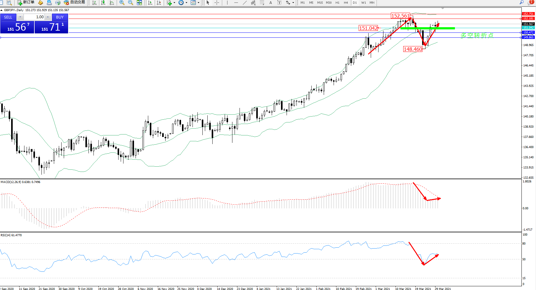 技术点评:多头动力延续布林带指标通道中上轨区间持续震荡上扬,高位抵达152.561位置后遇阻回撤,触及下轨148.460附近节点后多头动力强势反转上移,纠结于中轨附近不断上移,布林带指标呈收口走势后开始缓慢平移中,MACD指标处于多头区域高位回撤后开始徘徊,RSI指标处于多头区域高位急速下挫后反转上移,开始整理平移;