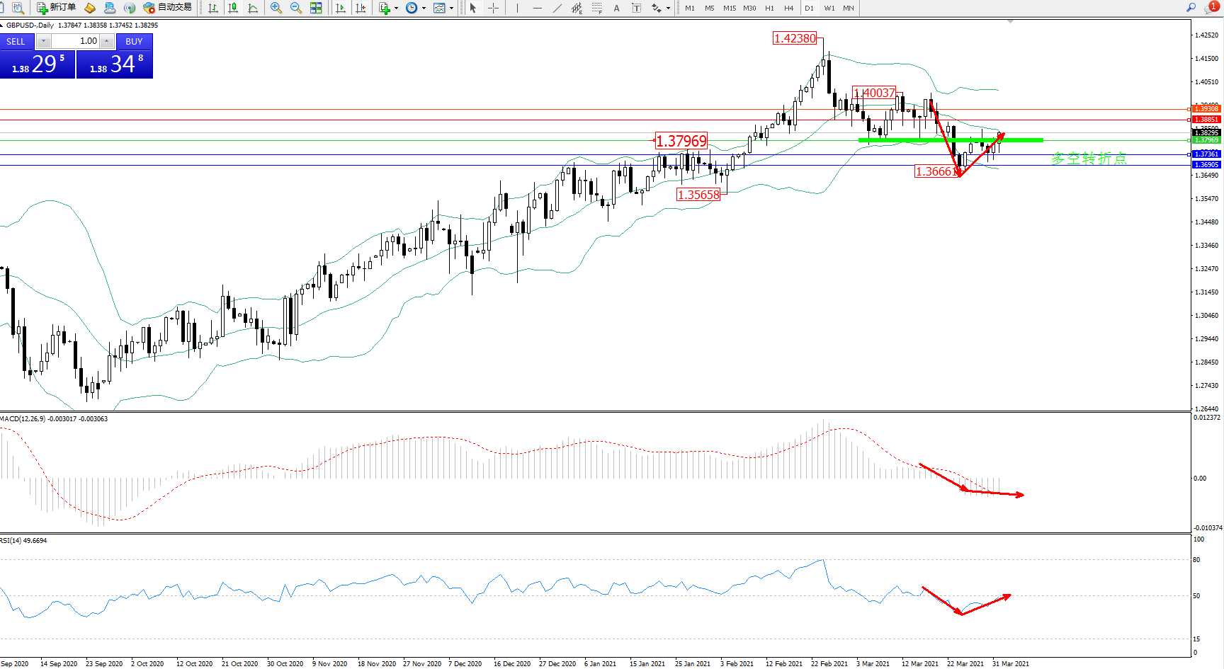备选策略:1.37969下方看跌,目标1.37361、1.36905