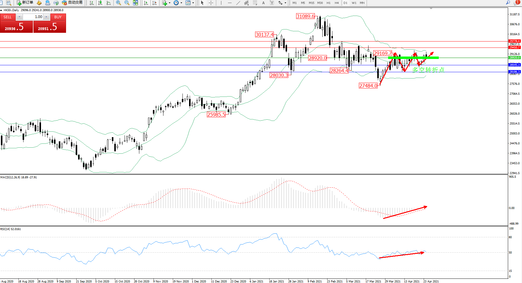 香港恒生指数4月26日(周一)收盘下跌125.92点,跌幅0.43%,报28952.83点;港股三大指数高开低走,且尾盘跌幅进一步扩大,市场情绪仍旧低迷。恒生科技指数涨0.21%报8485点。大型科技股涨跌不一,大市成交额不足1500亿港元,南下资金净流入42.04亿港元。南下资金今日净买入港股19.81亿港元。腾讯控股、美团-W、舜宇光学科技净买入额位列前三,分别获净买入9.07亿港元、7.11亿港元、2.5亿港元。净卖出前三个股为中芯国际、小米集团-W、紫金矿业,分别遭净卖出1.55亿港元、0.53亿港元、0.52亿港元。拼多多盘前跌1.59%,唯品会跌1.1%,阿里巴巴跌0.77%,京东跌0.31%。继阿里巴巴在去年12月因实施“二选一”垄断行为被立案调查,今年4月宣布罚款182.28亿元后,近日,市场监管总局根据举报,依法对美团实施“二选一”等涉嫌垄断行为立案调查。