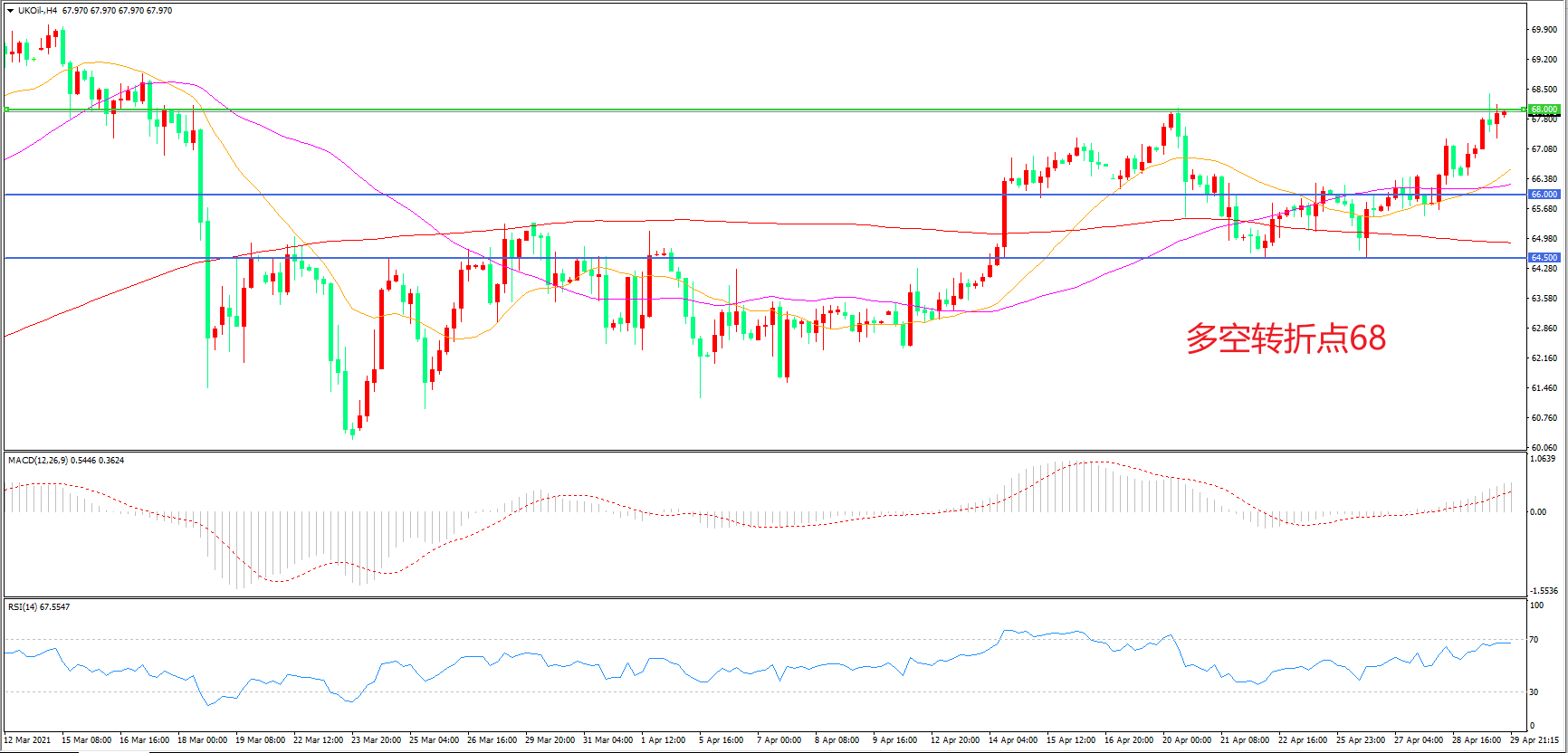 交易策略:在68.00之上看涨,目标72.00 75.00