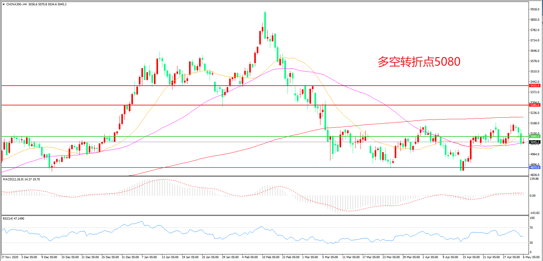 周四(5月6日),A股集体低开,开盘不久股指走势分化,沪指一度翻红,随后被医药等权重股拖累冲高回落,沪深300长阴下破,收报5045.2点。两市合计成交8755亿元,北向资金净买入1.84亿元,市场氛围一般。五一节过后,市场很可能会进入一个新的炒作周期,由于机构与热点资金之间仍有阶段性博弈情绪,目前没有形成合力的基础