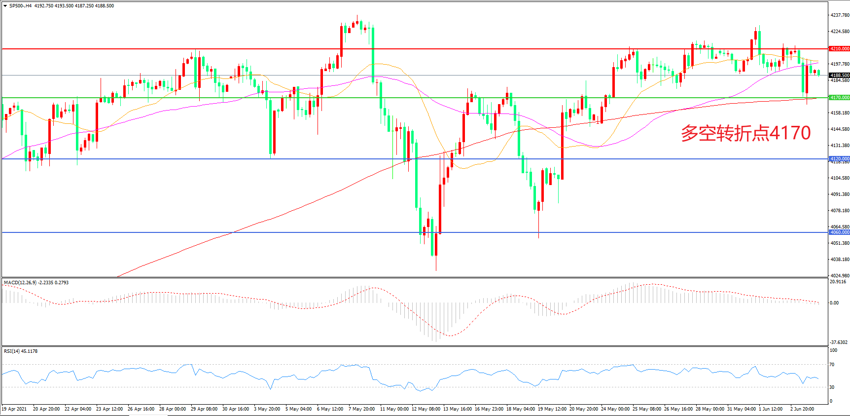 周四(6月3日),美国最新公布的一连串经济数据表现强劲,ADP就业人数激增97.8万,创下2020年6月以来的最大增幅,美国至5月29日当周初请失业金人数录得38.5万人,为疫情以来首次回落至40万以下,标普500延续高位震荡,收报4190点。今晚20:30分,市场将迎来市场最关心的非农就业数据,务必重点关注。