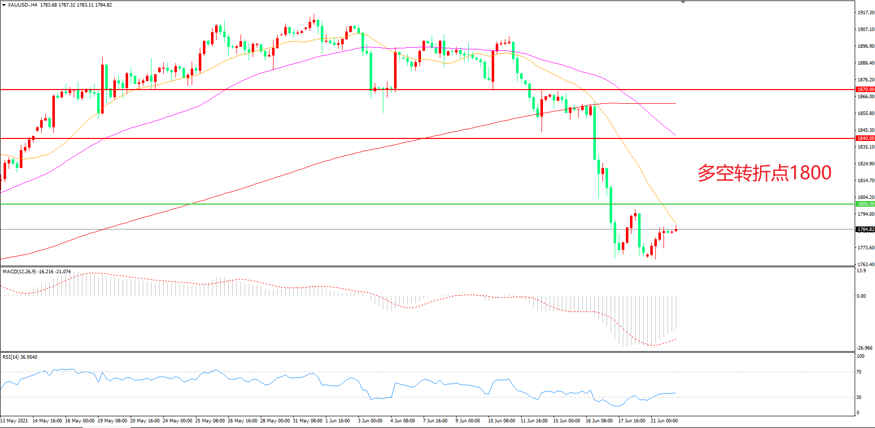 周一(6月21日),美联储主席鲍威尔在6月22日出席美国国会听证会准备的讲稿中表示,美国通胀最近数月已经显著上扬,通胀料将朝着美联储的目标回落,美元指数回吐上周五的多数涨幅,现货黄金小幅回暖,收报1786.49美元/盎司。从中期看,美联储最新的政策立场已给美元带来顺风,金价在强势美元压制下下行概率较大。