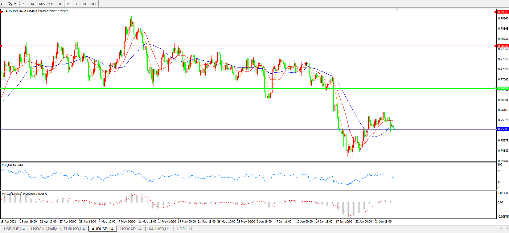 交易策略:0.7680下方看跌,目标0.7560、0.7400