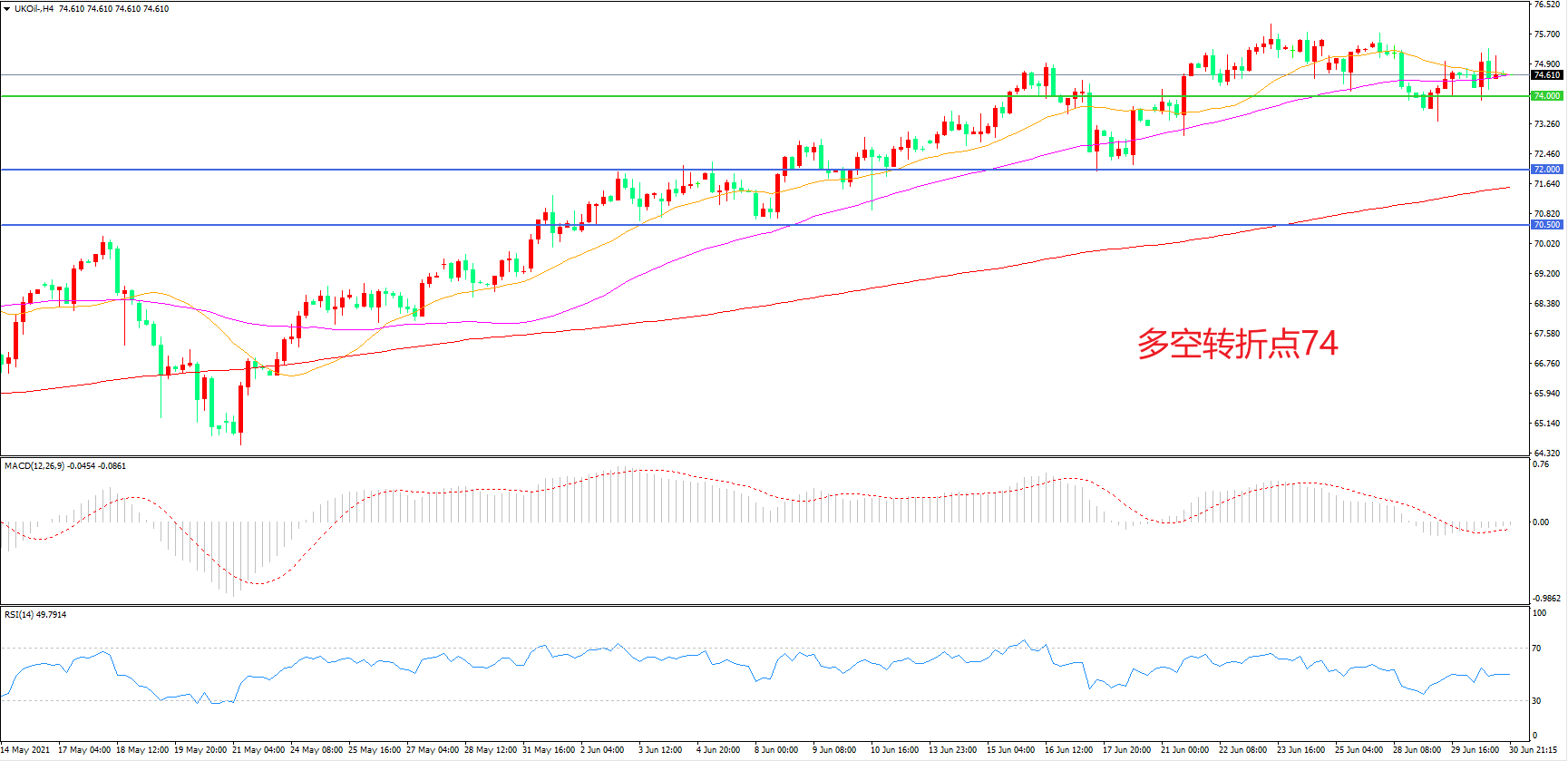 交易策略:在74.00之上看涨,目标77.00 80.00