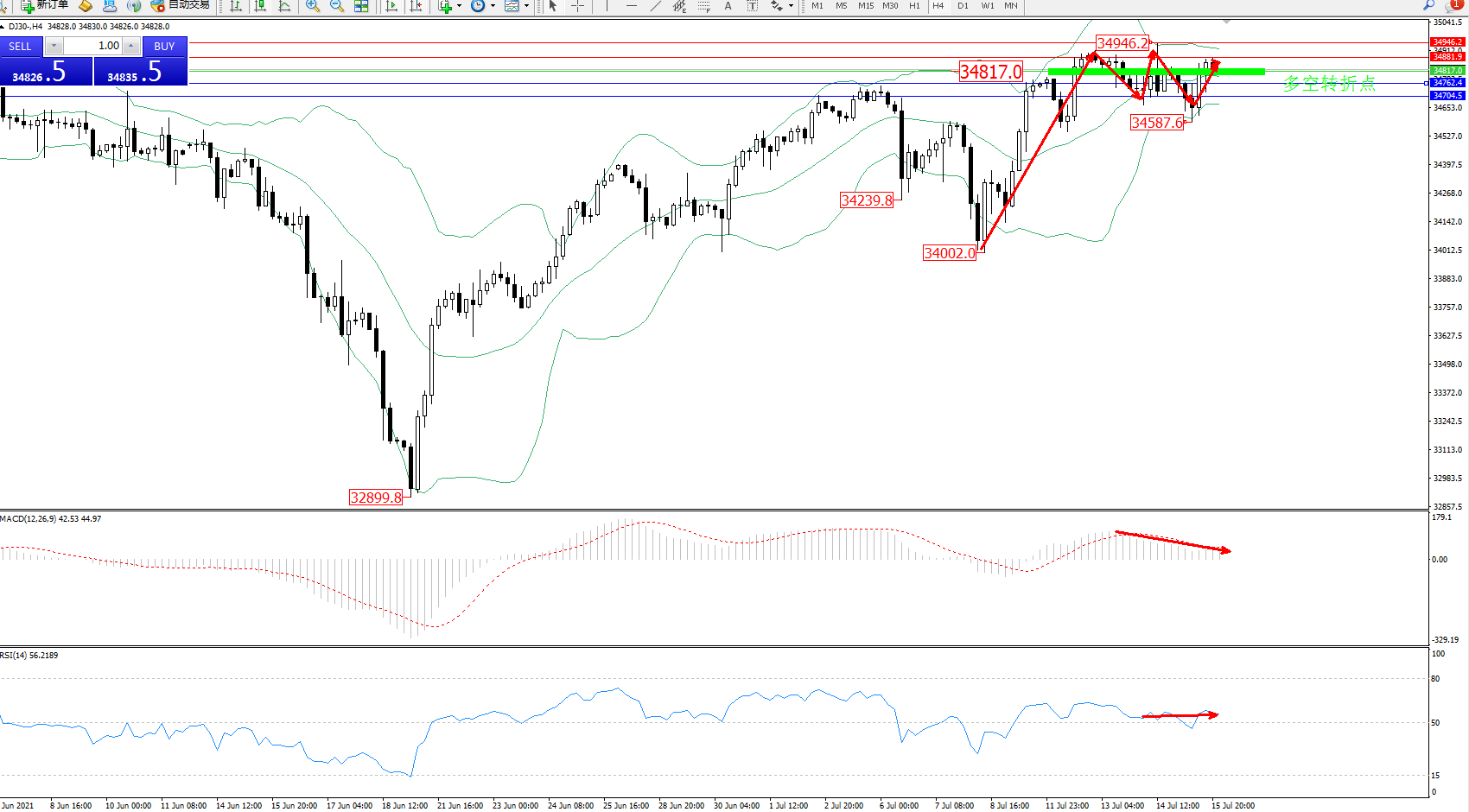 道琼斯指数7月15日(周四)收盘上涨54.98点,涨幅0.16%,报34988.21点;美国股市收低,投资者评估美联储主席鲍威尔面对通胀数据高于预期仍继续向美国经济提供支持的政策立场所进行的辩护。美国上周初请失业金人数下降,就业市场稳步改善,这提振了美元;美元也受到对冲基金和实钱账户的稳健买盘提振;期权市场保持平静。近几周美元指数攀升,因投资者对美元前景更加乐观,受美联储对美国经济的评估日益乐观推动,美联储将下次升息时间预期提前。