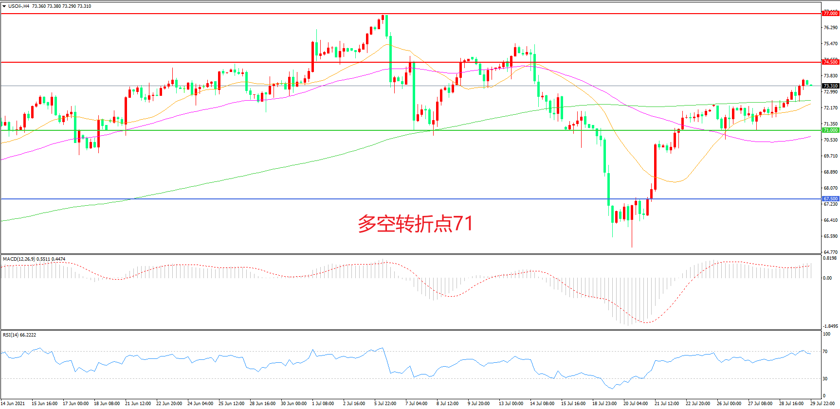 多空转折点:71.00