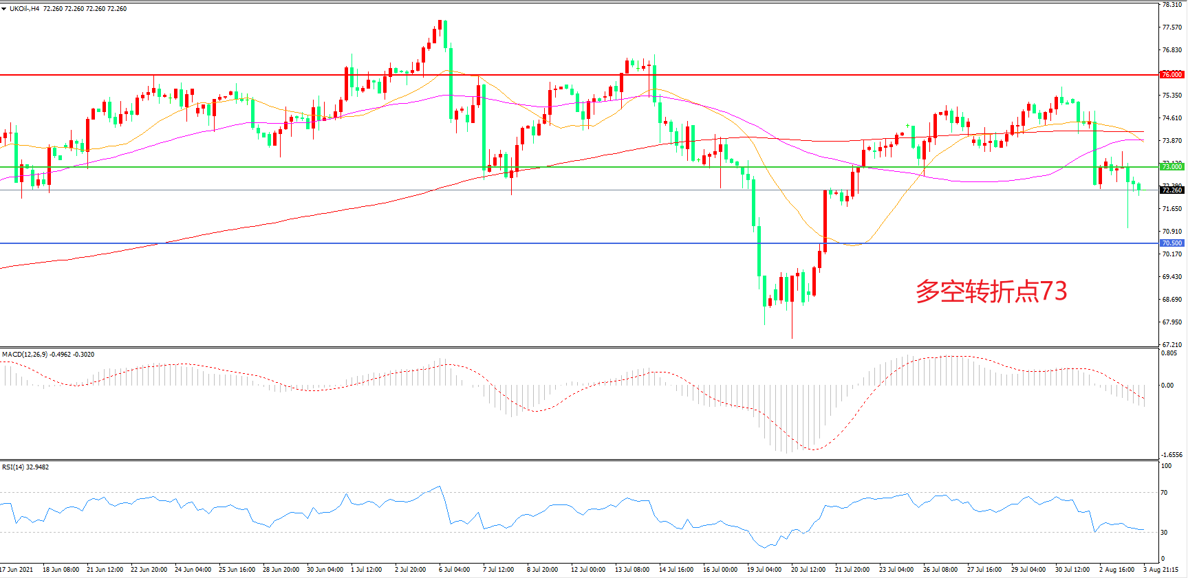 交易策略: 在73.00之下看跌,目标70.50 66.50