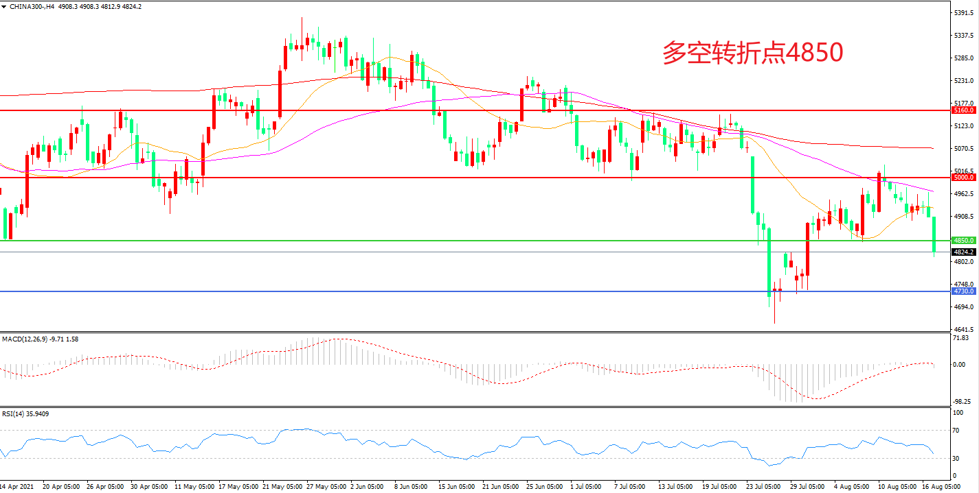 交易策略:在4850.00之下看跌,目标4730.00             4600.00