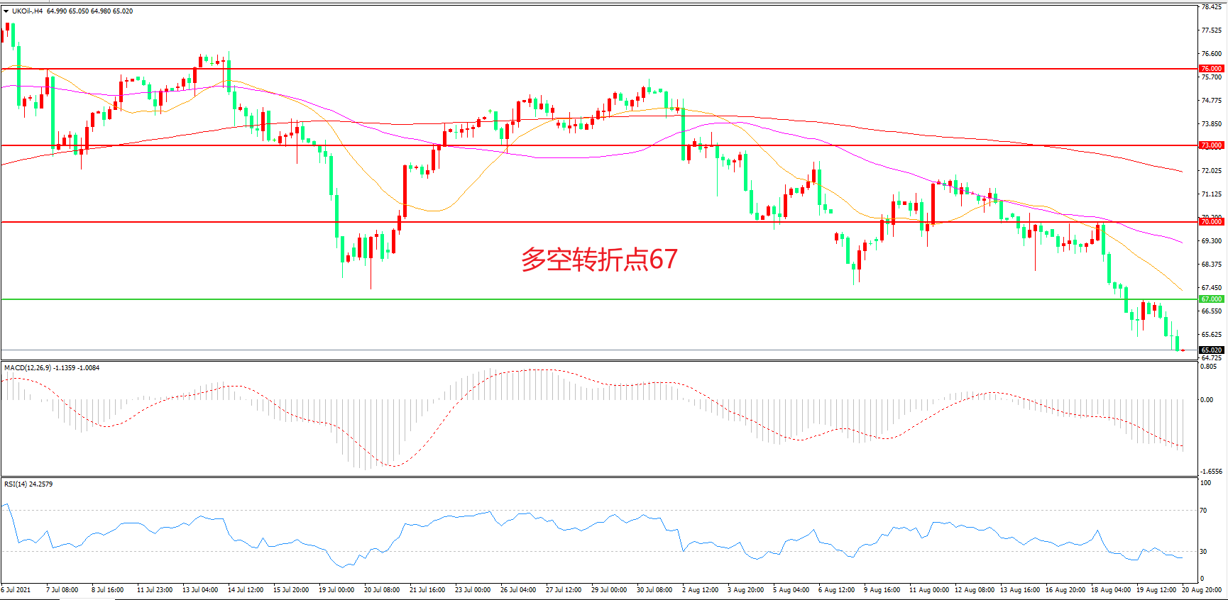 交易策略:在67.00之下看跌,目标63.00 60.00