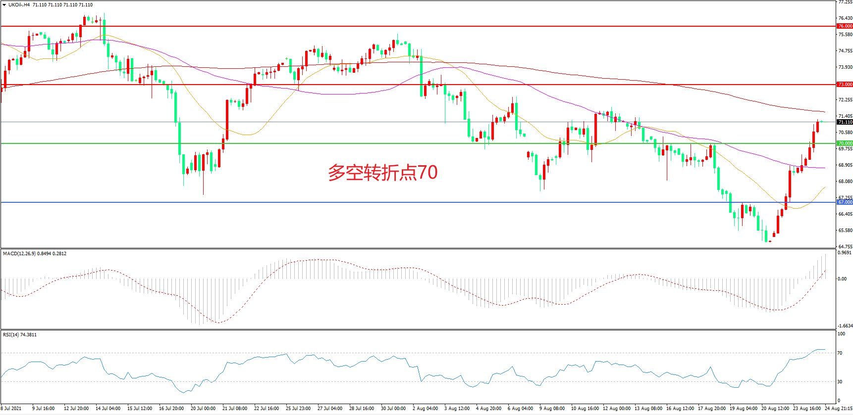 周二(8月24日),市场逐渐消化了前期美联储缩表的预期,开始逐渐关注本周的杰克逊霍尔央行年会,与此同时,持续恶化的疫情也对美联储预期退出QE的时间有了推后的可能,风险情绪推动布伦特原油再度反弹,收报71.11美元/桶。