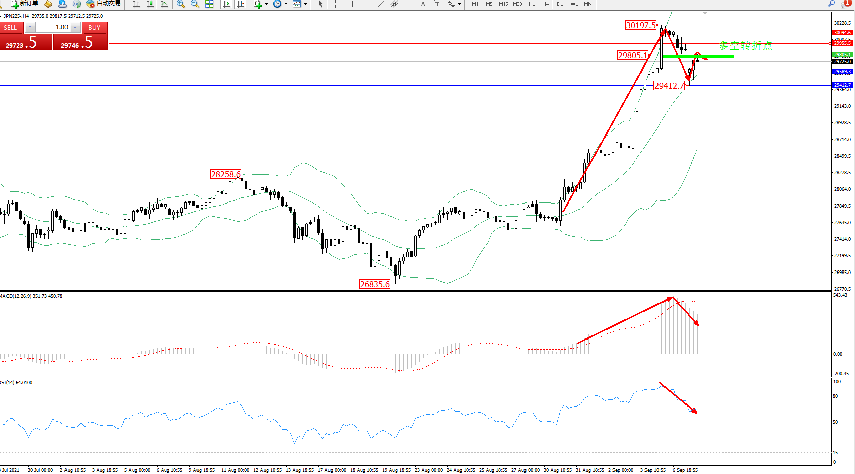 日经225指数9月7日(周二)收盘上涨251.11点,涨幅0.85%,报29911.00点。接替菅义伟担任日本首相的有力竞争者岸田文雄呼吁编制一项超过30万亿日圆(2730亿美元)的刺激计划,以缓解新冠疫情对经济的冲击。日本央行的通胀目标。批评人士称央行的物价目标对于长期难以摆脱近零通胀率的经济而言,完全不切实际。若是依照他的计划,政府将编制一项超过30万亿日圆的追加预算案,所需资金将通过发行债券筹集。日本首相菅义伟上周意外宣布不参选自民党总裁选举,任期届满后将离任,这使得9月29日的党魁选举结果将充满各种可能性。包括岸田文雄在内,已有多人表态考虑参选。