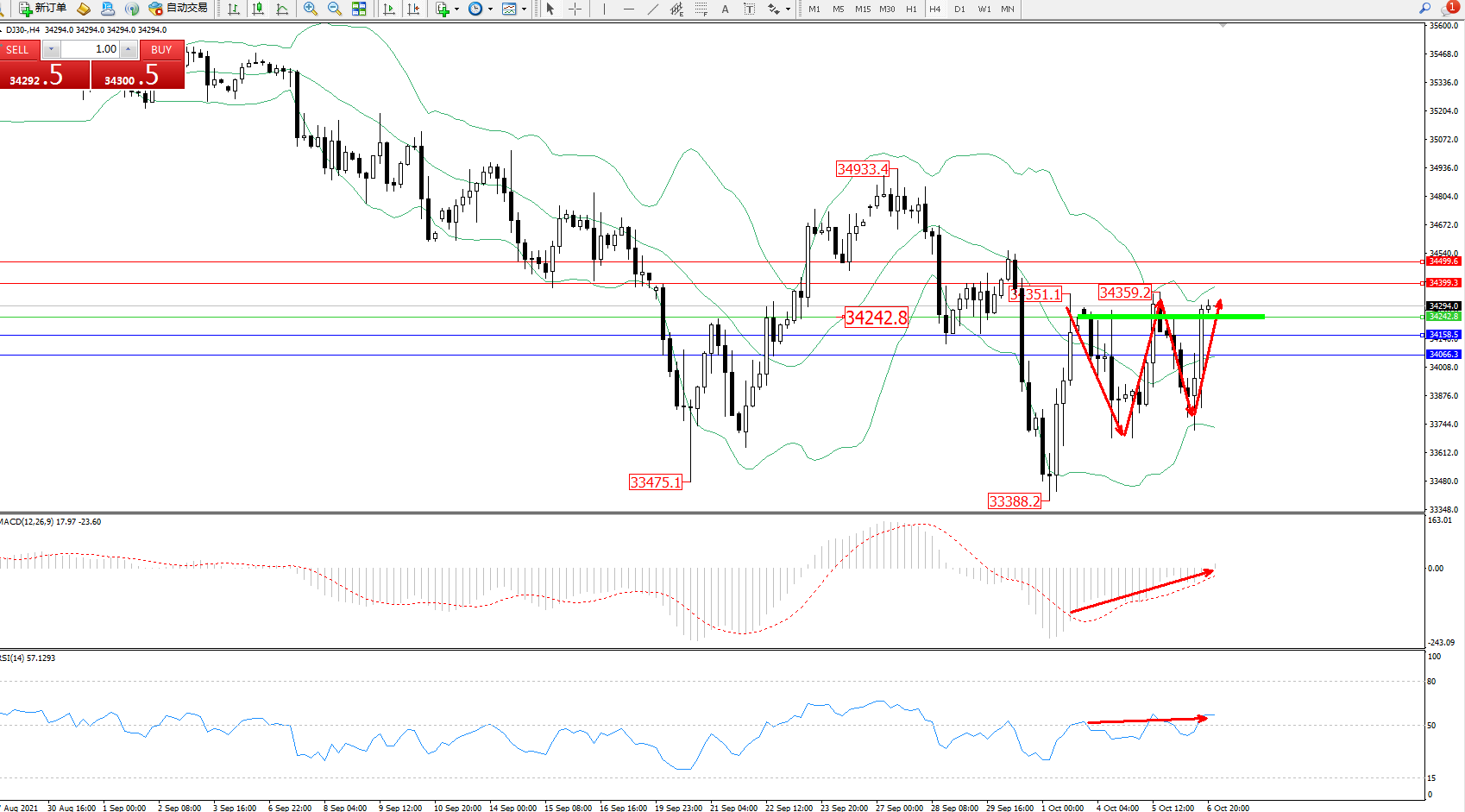 交易策略:34242上方看涨,目标34399、34499