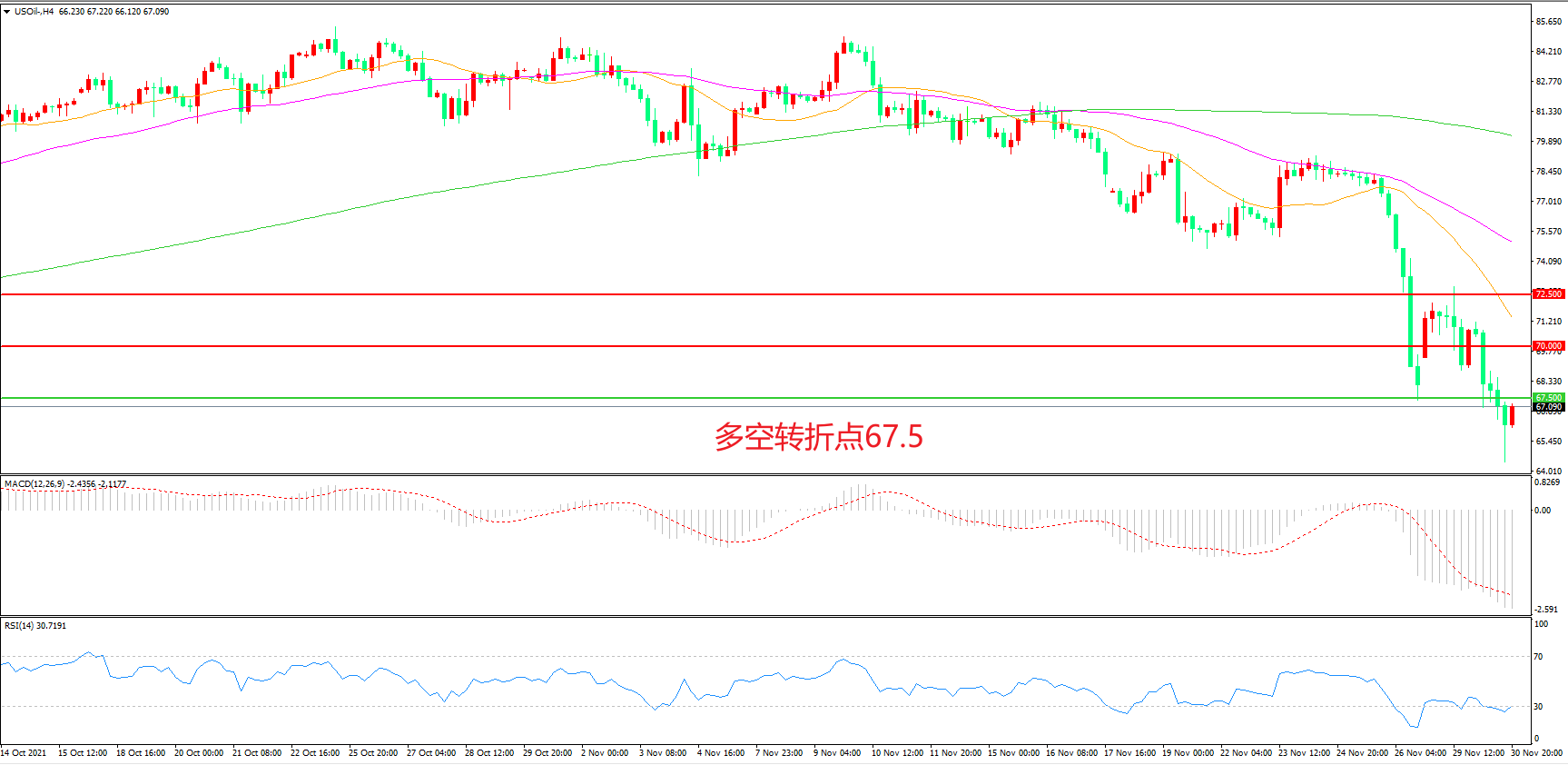 交易策略: 在67.50之下看跌,目标65.00 62.00