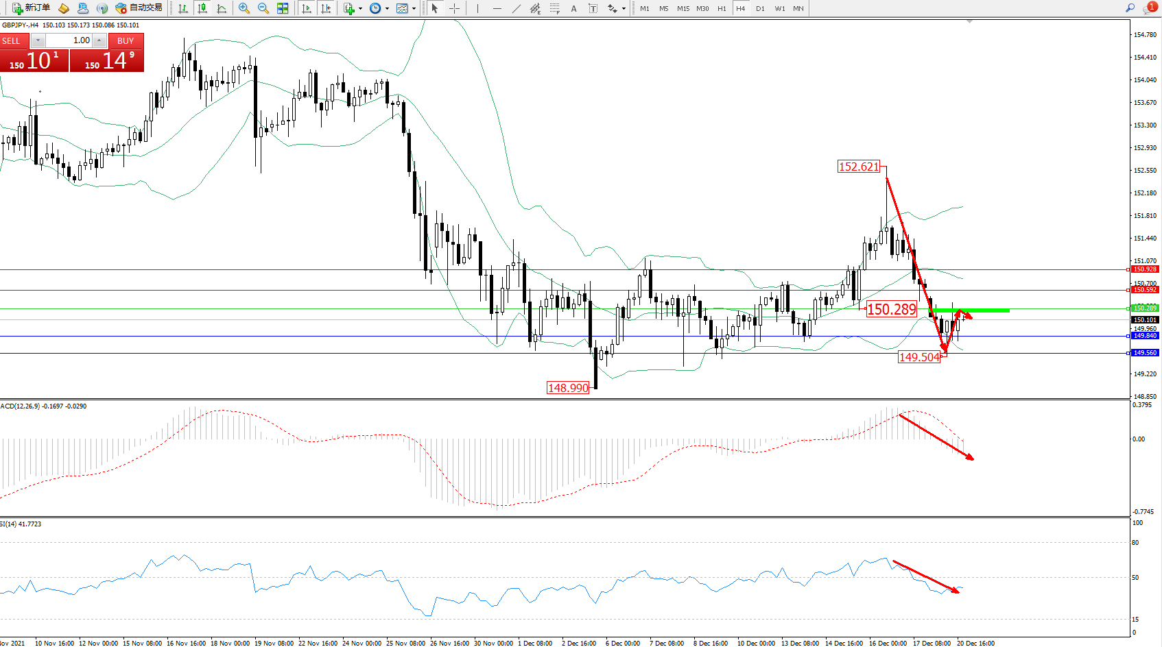 技术点评:高位空头动力急速震荡下行,低位跌破布林带指标下轨至149.504位置得到支撑开始震荡,纠结于布林带指标下轨附近持续震荡,短期或有继续想下移动态势,布林带指标呈张口走势态势良好,MACD指标空头动力维持0均衡线下侧不断向下移动中,RSI指标处于50均衡线下侧弱势徘徊中;
