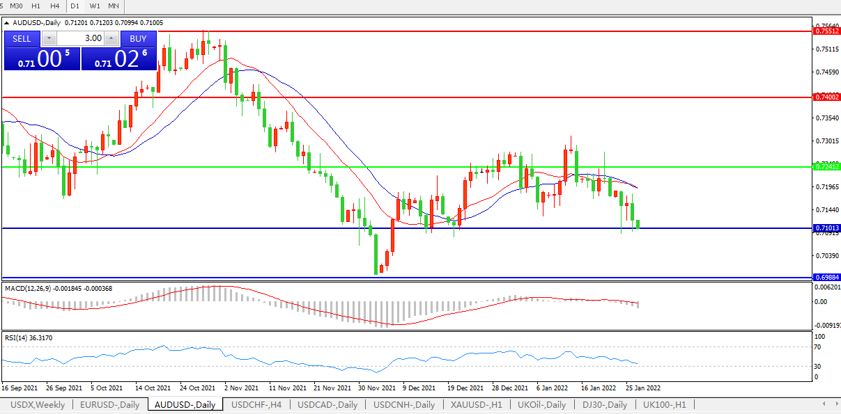 交易策略:0.7240下方看跌,目标0.7100、0.6980