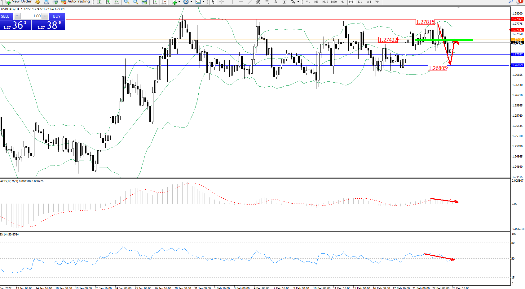 交易策略:1.27422下方看跌,目标1.27097、1.26859