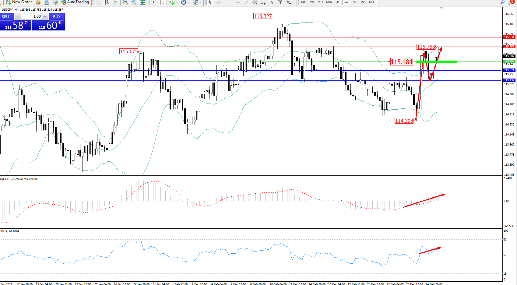 技术点评:低位多头动力强势拉升上扬,触及布林带指标上轨至115.758位置节点后开始震荡,短期多头动力有继续攀升态势,布林带指标呈张口走势持续中,MACD指标处于0轴线上側弱势徘徊向上移动,RSI指标处于50均衡线上側窄幅整理中;