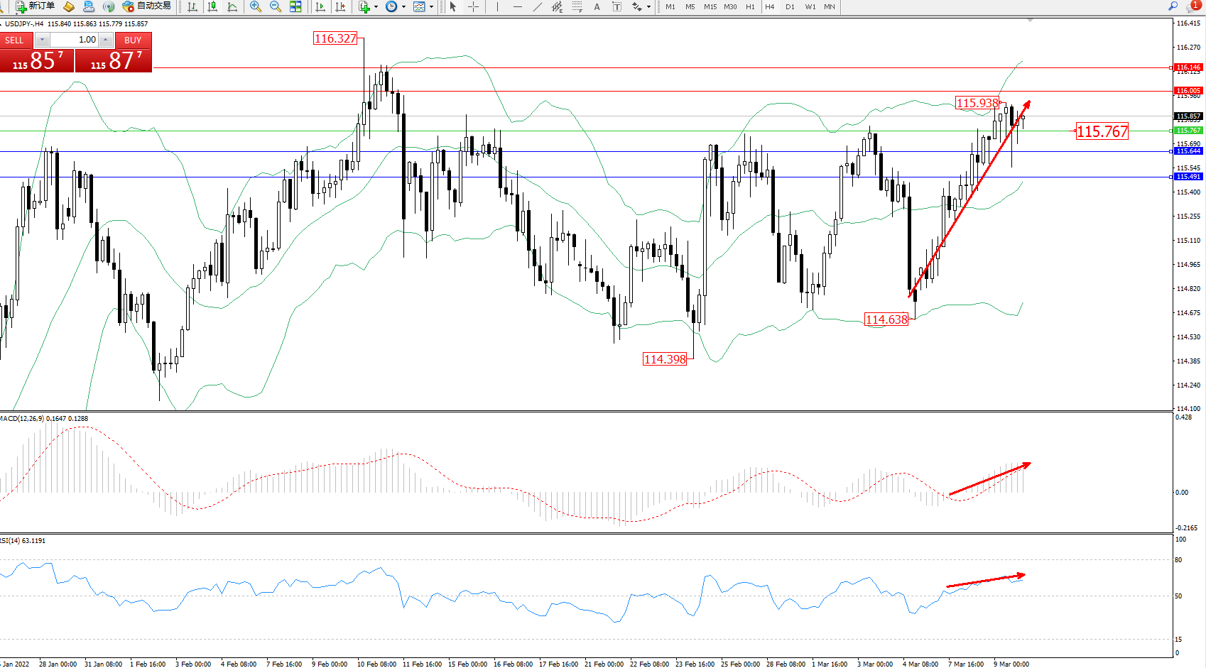 美元兑日圆维持115.857附近震荡, 乌克兰战争推高了能源价格,着油价上涨,这可能意味着日本通胀前景面临上行风险,经济增长面临下行风险。首相岸田文雄领导的新政府也不太支持通货再膨胀,尤其是日本央行不惜一切代价实施激进的宽松政策。日本很长时间维持负利率,若实施利率正常化,将有利于日元,投资者需对此保持关注。
