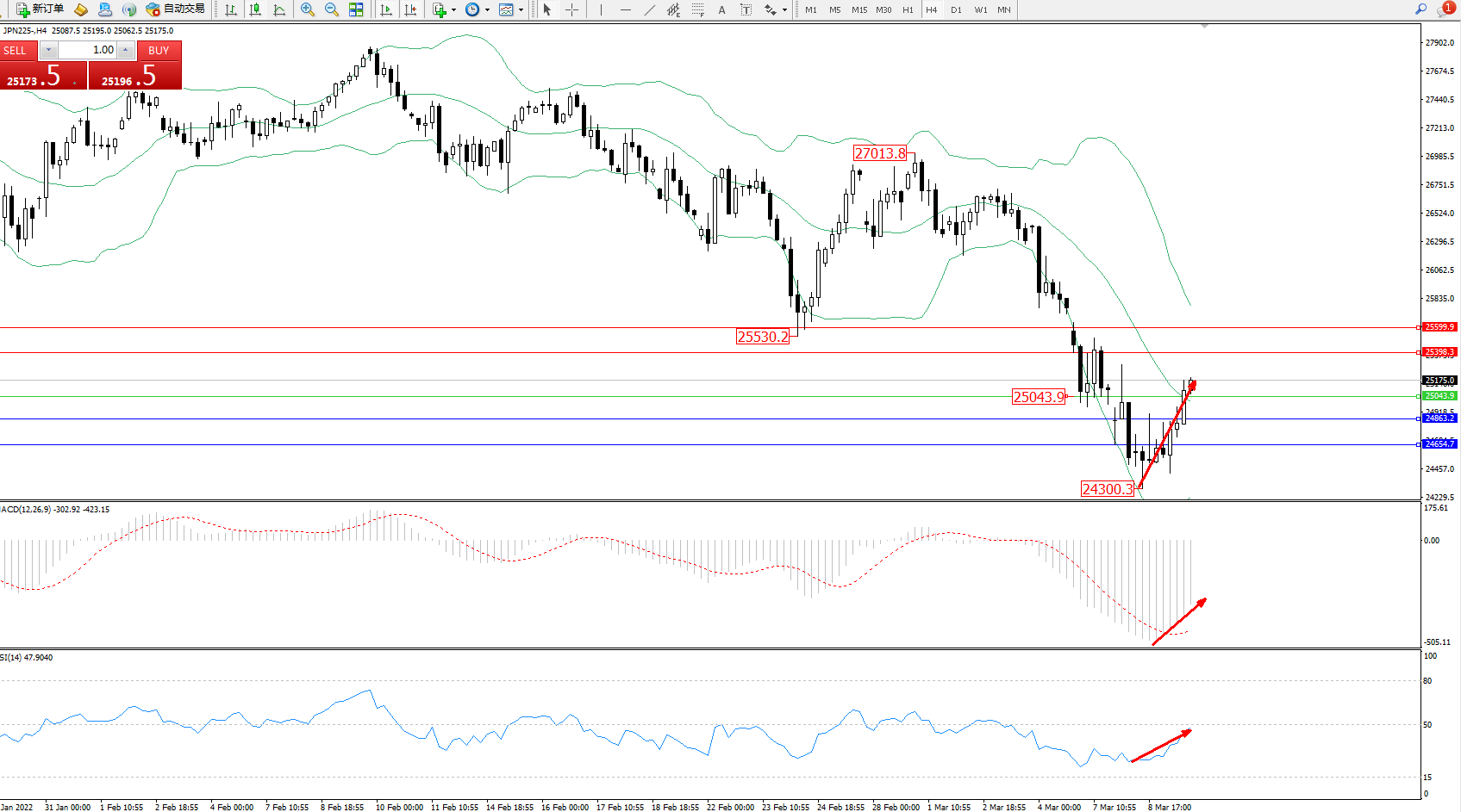 日经225指数3月9日(周三)收盘下跌67.45点,跌幅0.27%,报24723.50点。日本自然资源和能源局公布的截至3月7日汽油为每升174.6日元,比前一周上涨1.8日元,连续上涨9周。俄乌战事持续,美国宣布禁止俄罗斯油气产品进口,东京原油期货价格突破8万日元,上次突破8万日元是在约13年半之前的2008年8月。不断攀升的能源价格加强市场对通胀和经济衰退的担忧,日本5年期国债收益率由负转正。高涨的燃料价格和疫情的双重打击下,全日空宣布可改签的日本国内航线机票将平均涨价3%。