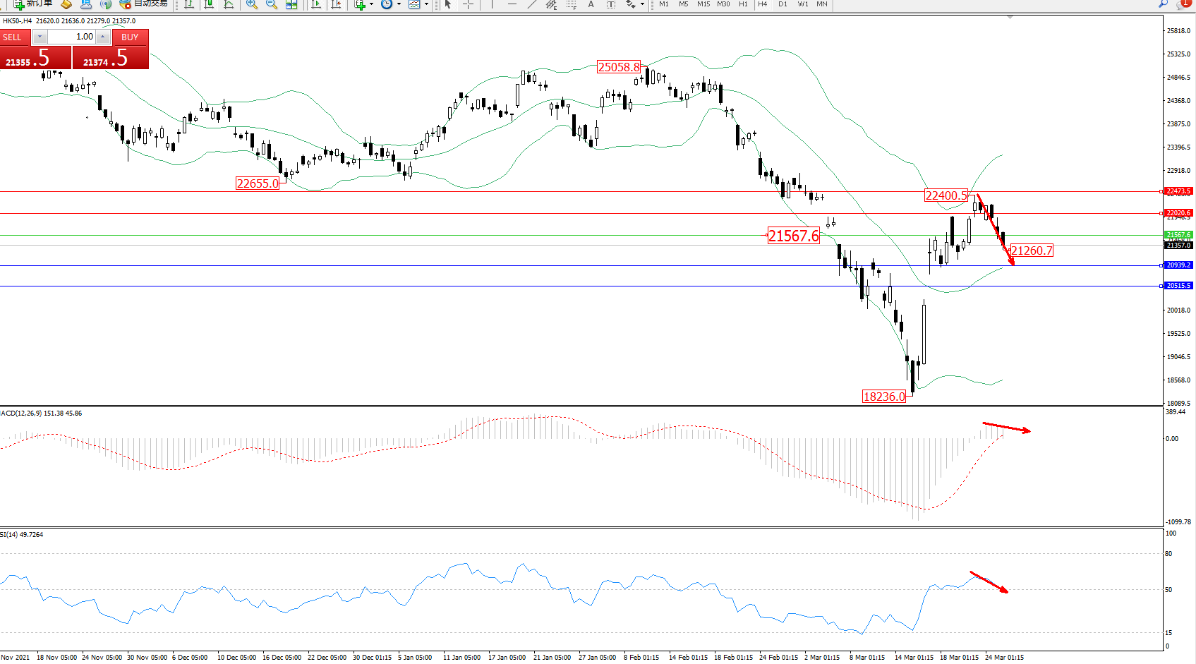 香港恒生指数3月25日(周五)收盘下跌541.07点,跌幅2.47%,报21404.88点;港股午后跌幅持续扩大,恒生科技指数大幅收跌4.98%,再度跌破4400点关口。南下资金净流出12.75亿港元,大市成交额为1475亿港元。大型科技股重挫领跌大市,美团、快手跌超8%,阿里巴巴、京东、百度均跌超5%,网易跌4.88%,腾讯跌超2%;据央视,香港特区选举管理委员会今日宣布,第六届香港特区行政长官选举将于5月8日举行,提名期为4月3日到4月16日。