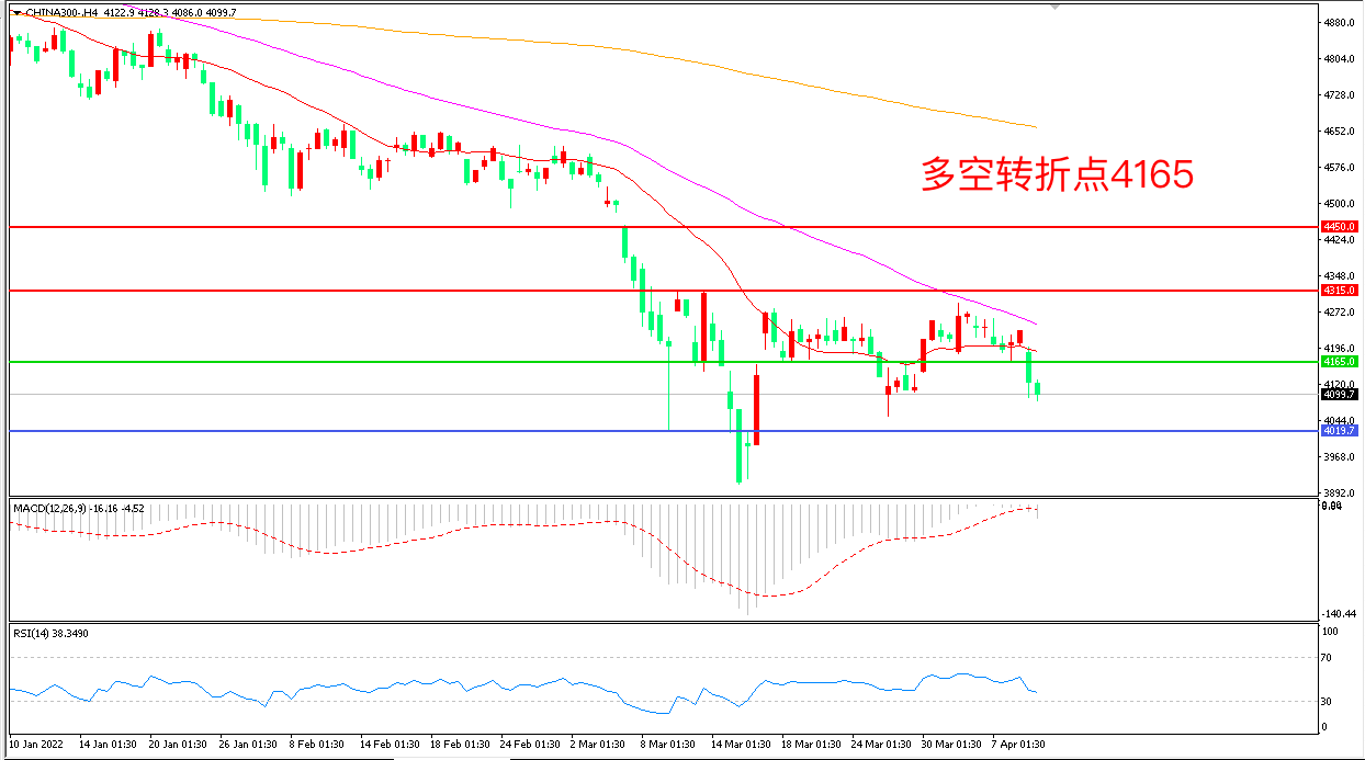 周一(4月11日),A股低开低走,沪指猛跌近3%,失守3200点,沪深300大幅下挫,收报4009.7点。两市成交约9637亿元,北向资金净卖出57.62亿。短期来看,国内疫情反复引发市场对经济的担忧,叠加投资者情绪一直处于不稳的状态,出现集中砸盘的现象,整体来看,沪深300仍然处于震荡筑底阶段,再度探底之后或将有利于后期的反转。