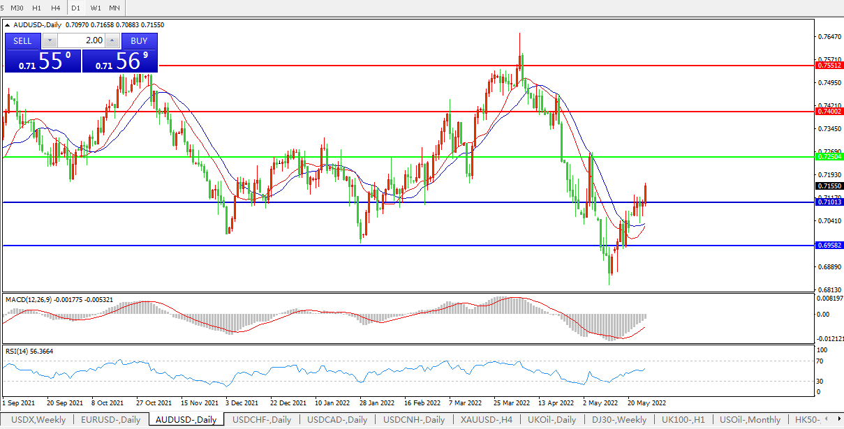 备选策略:0.7250上方看涨,目标0.7400、0.7550