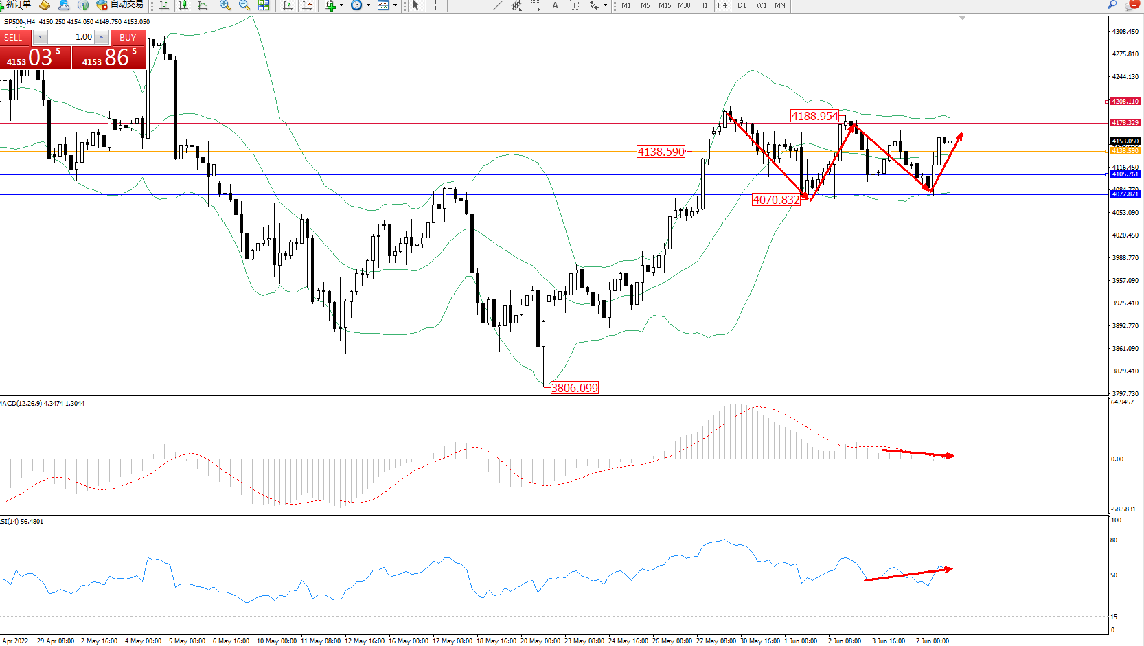标普500指数6月7日(周二)收盘上涨38.67点,涨幅0.94%,报4160.10点;在价格上涨和美国消费者保持强势的推动下,美国消费者信贷4月份再度飙升,此前3月份的增长创纪录。美联储公布的数据显示,消费者信贷总额较前月增加381亿美元,3月份的数据下修至增长473亿美元。