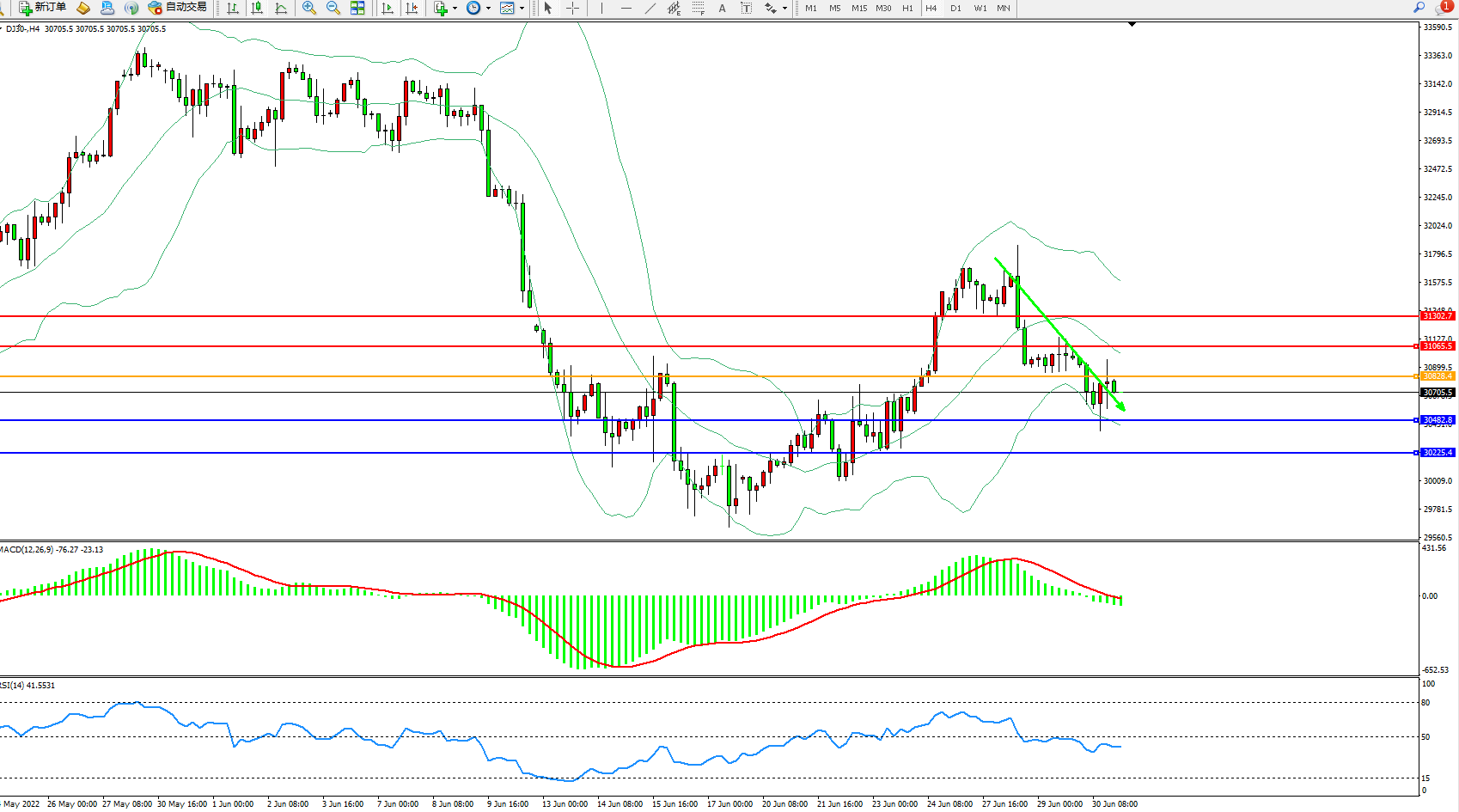 道琼斯指数6月30日(周四)收盘下跌250.62点,跌幅0.81%,报30778.69点;美国三大股指6月和第二季均收低,道琼斯工业指数遭遇1962年以来的最大上半年百分比跌幅。