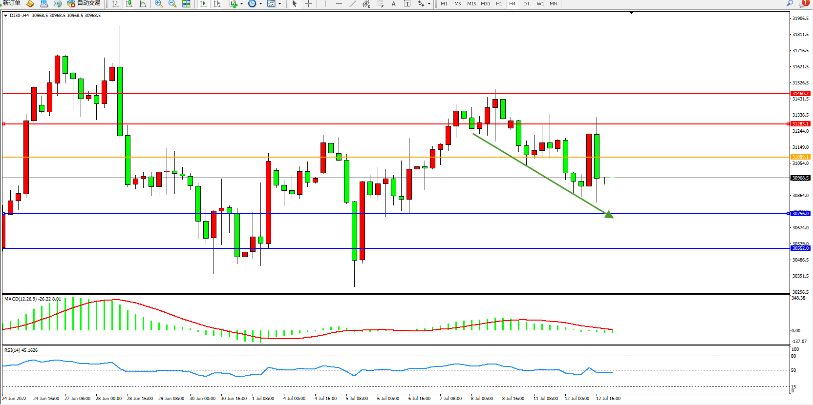 道琼斯指数7月12日(周二)收盘下跌188.82点,跌幅0.61%,报30985.02点;IMF预计美国今明两年GDP增速分别为2.3%和1.0%,此前为2.9%和1.7%;预计今年失业率为3.7%,此前为3.2%,并预计2024年和2025年失业率都将超过5%。