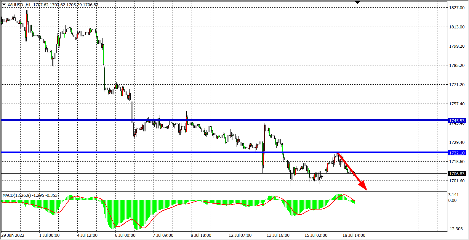 交易策略:在1722.00之下看跌,目标1690.00          1670.00