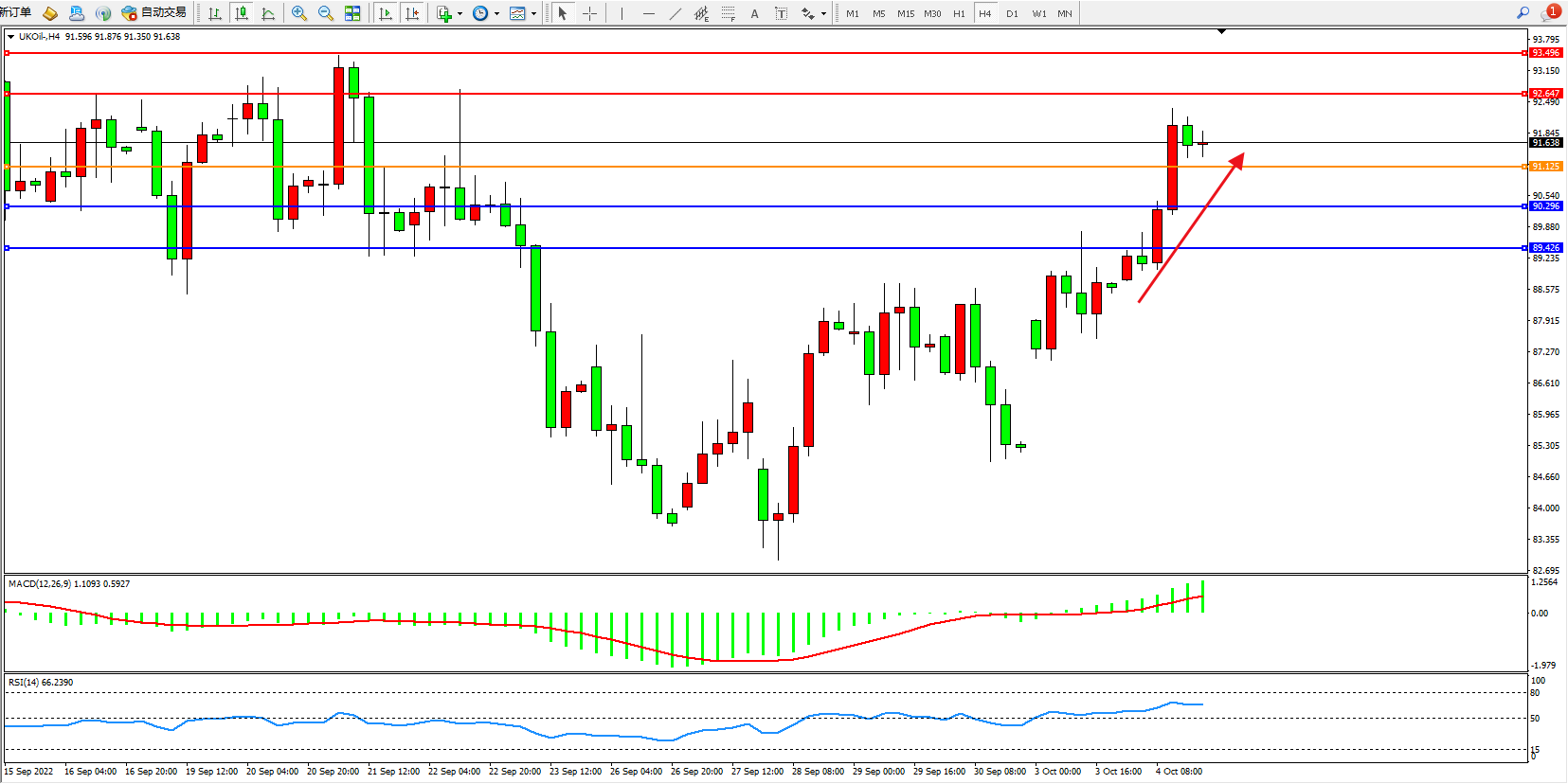 布油UKOil——4小时K线图显示: