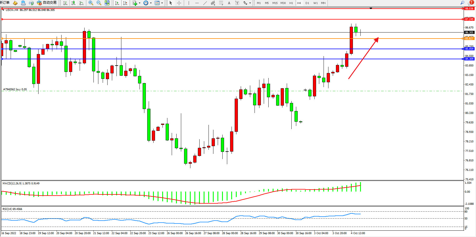原油维持86.305附近震荡,由于对供应紧张的担忧再次出现,油价隔夜大涨近4%。投资者预计,OPEC+将在周三(10月5日)召开的自2020年以来首次面对面会议上决定减产至少100万桶/日,约占全球需求的1%。