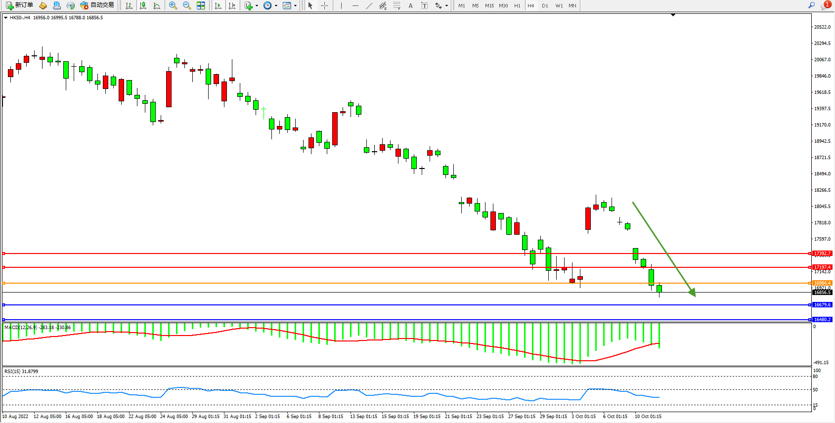 恒指HK50 4小时图