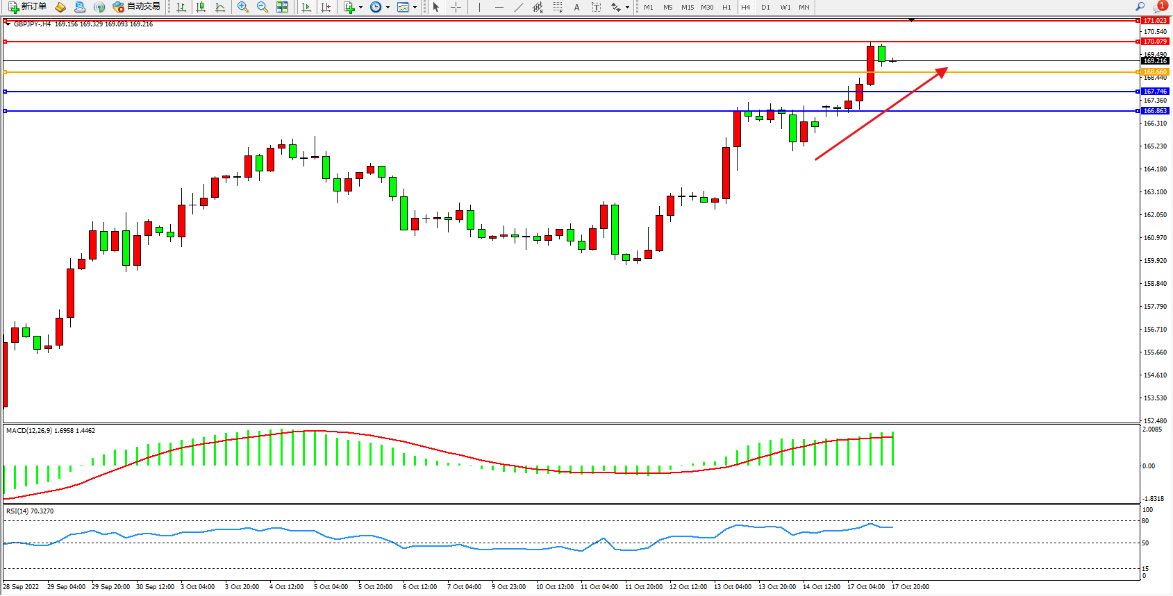 交易策略:168.660上方看涨,目标170.079、171.023